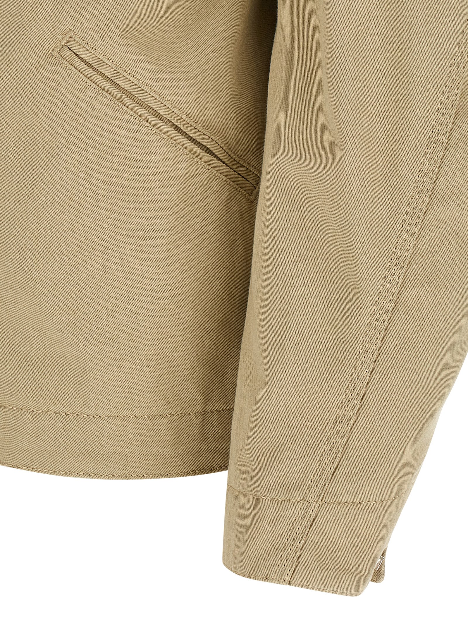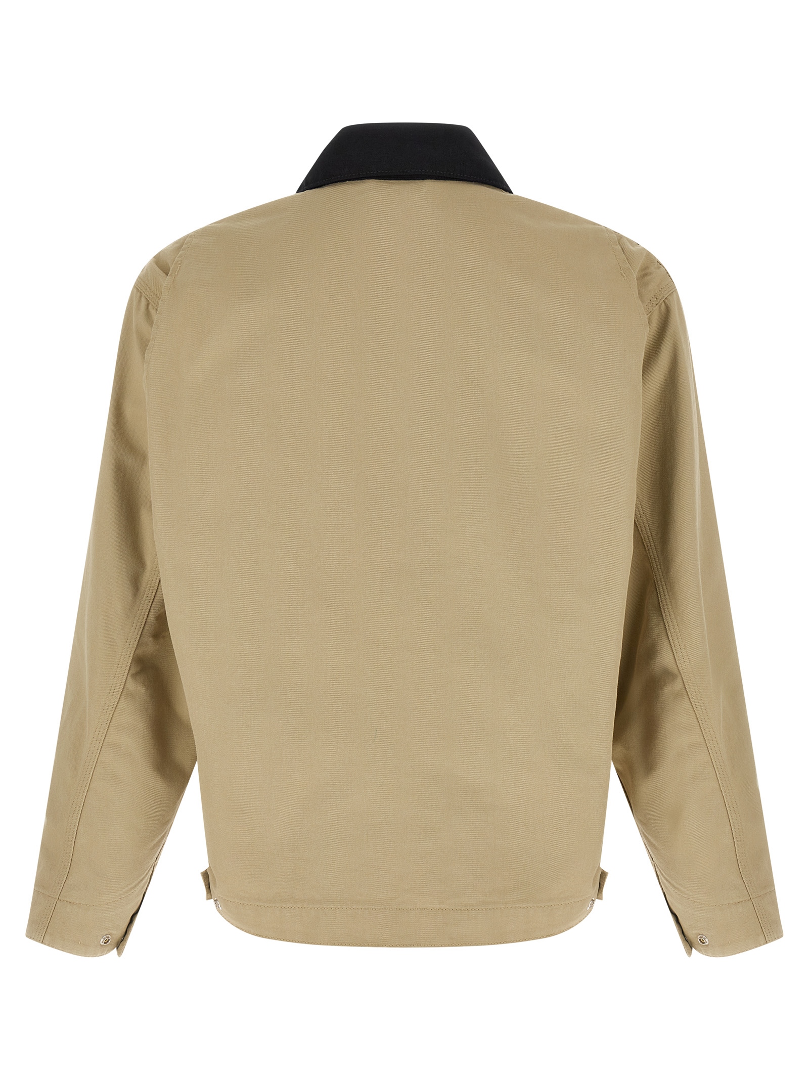 ‘OG Detroit’ medium weight cotton twill jacket with poplin lining, contrast shirt collar, logo patch and front zip closure, pockets, long cuffed sleeves.