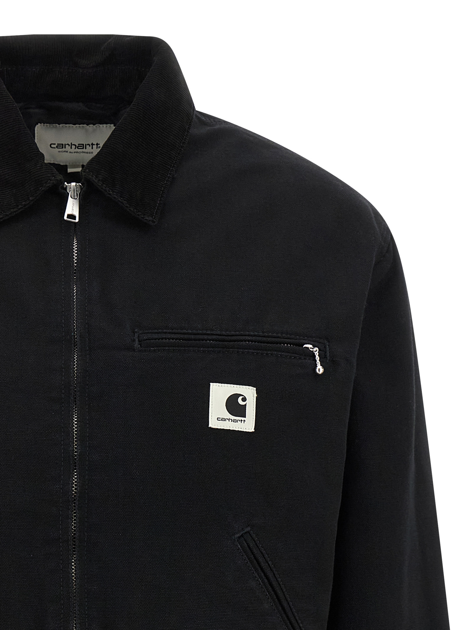Dearborn ‘OG Detroit (Winter)’ cotton canvas jacket with nylon matelassé lining, tone-on-tone velvet collar, logo patch and front zip closure, pockets, long cuffed sleeves.