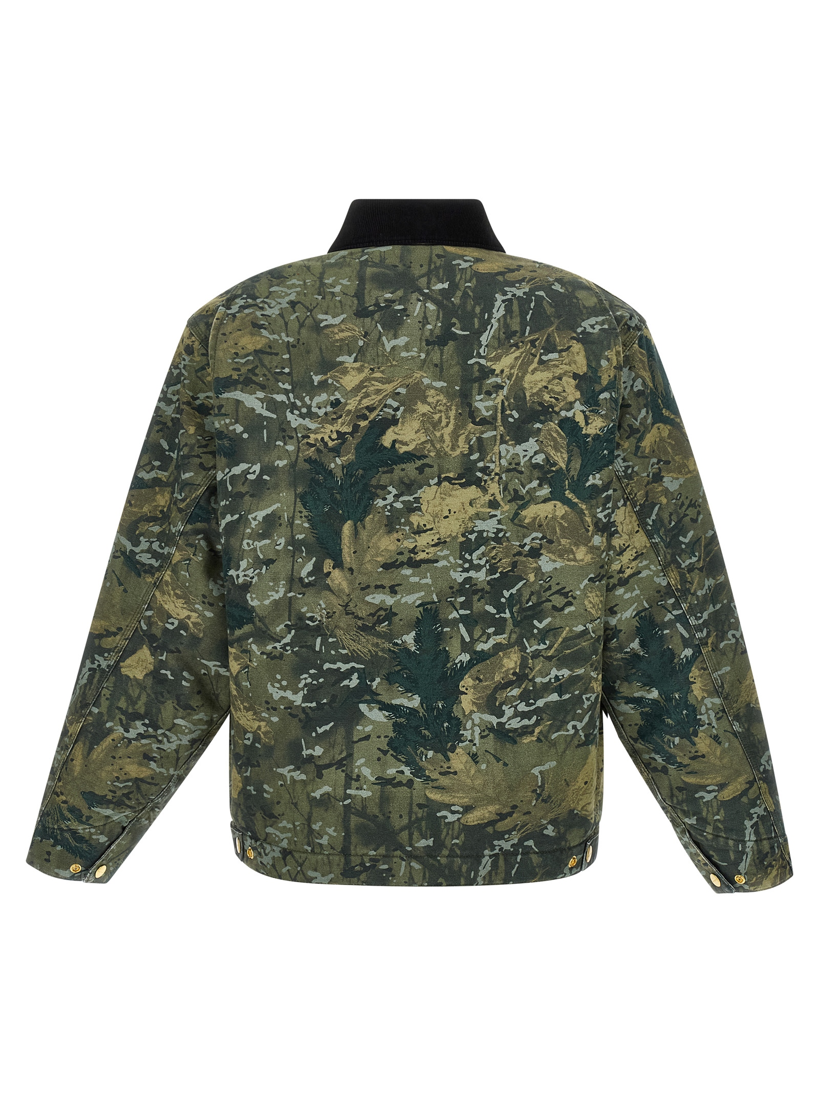 ‘OG Detroit (Winter)’ jacket in heavy Dearborn cotton canvas treated with a chalk wash to achieve a sun-discolored effect, nylon matelassé lining, velvet collar, logo patch and front zip closure, pockets, long cuffed sleeves.