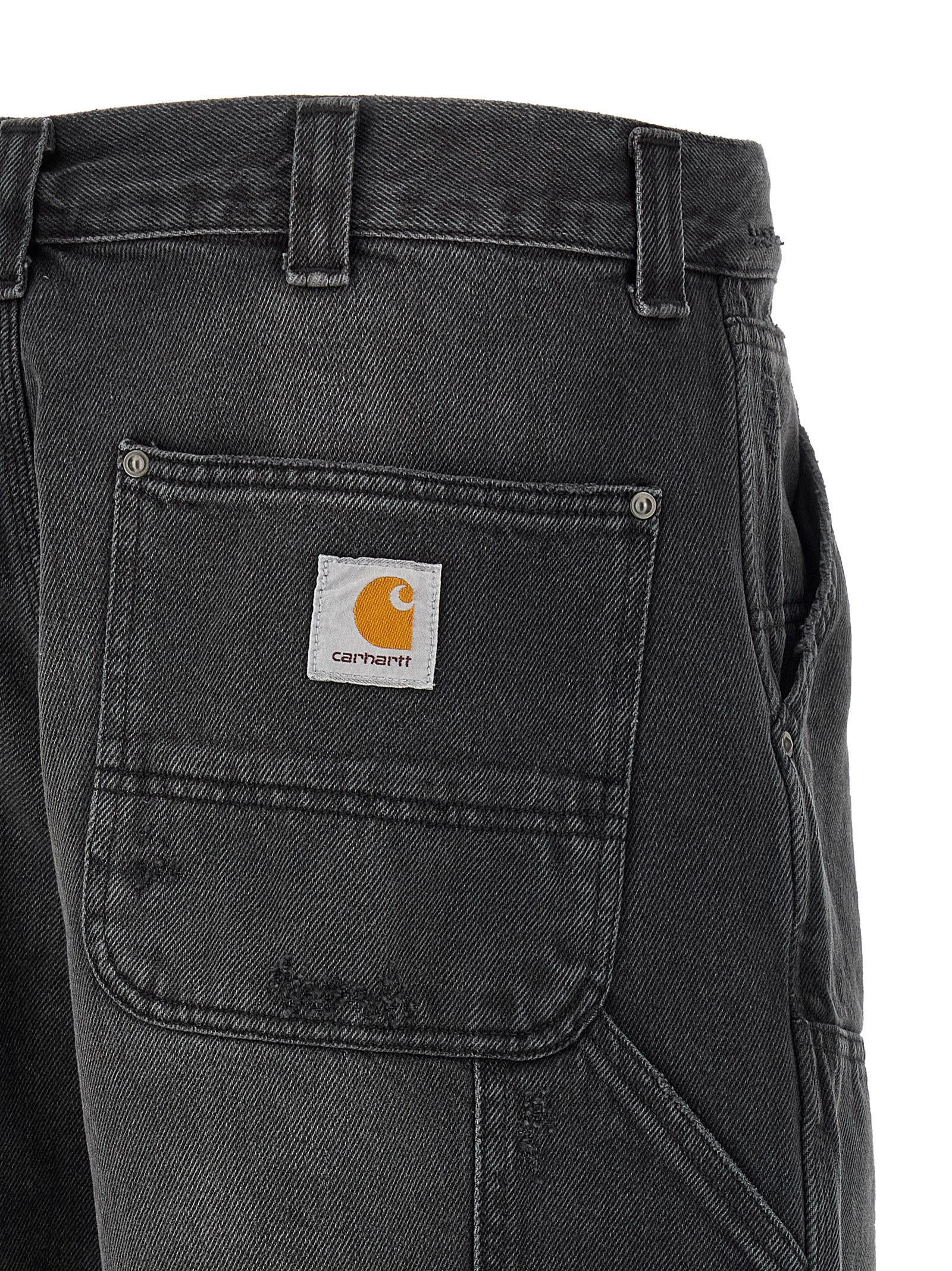 ‘OG Double Knee’ jeans in heavy stonewashed cotton denim with used effect wide and straight leg, front zip and button closure, pockets, back logo patch.