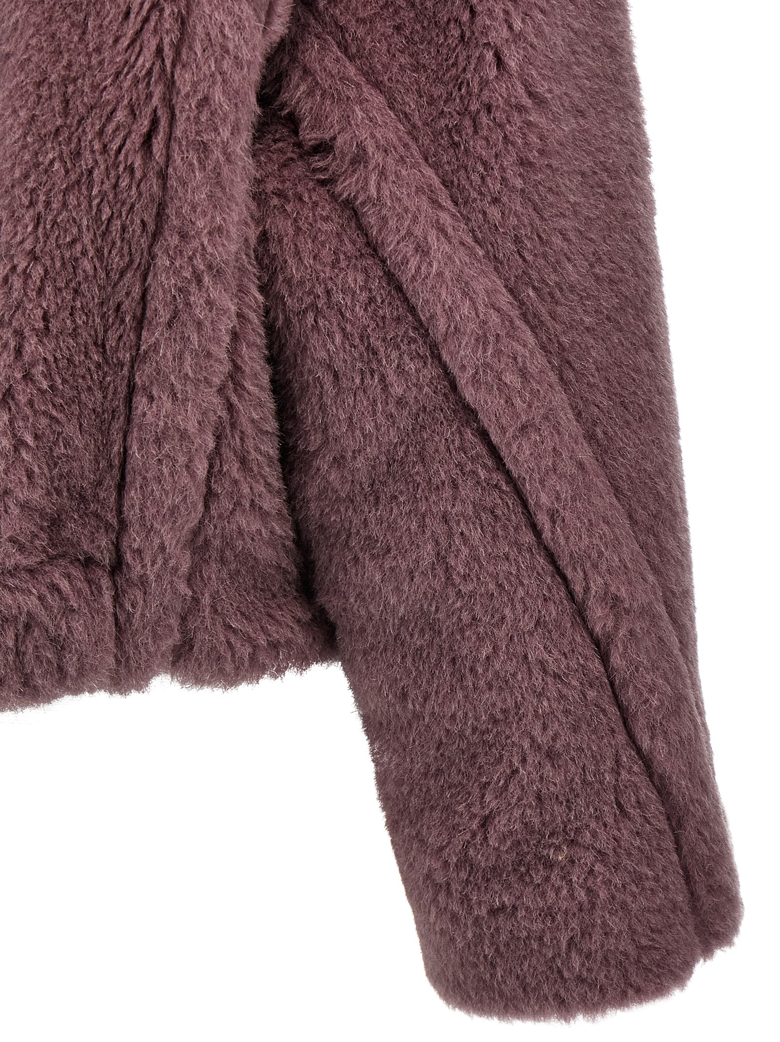 ‘Oggeri’ jacket in alpaca and wool Teddy fabric on a silk base, crop model, lapel collar, elastic hem, Monogram jacquard fabric lining, long sleeves with dropped shoulders, double-breasted button closure, pockets.