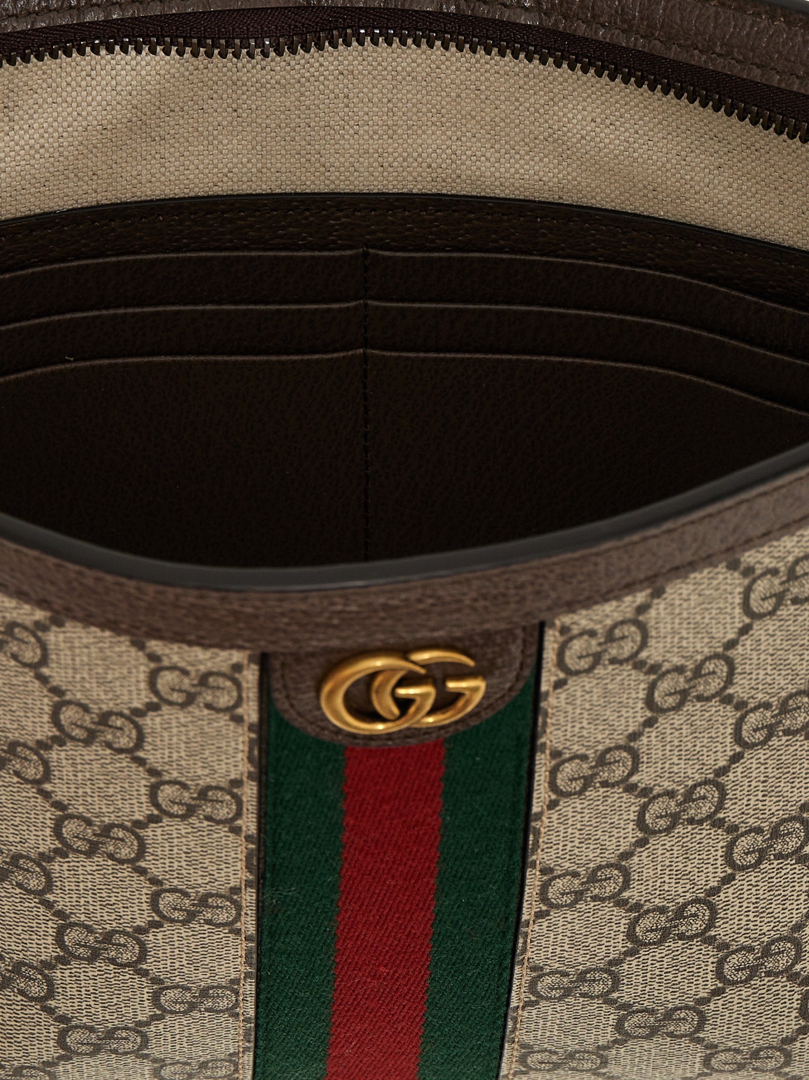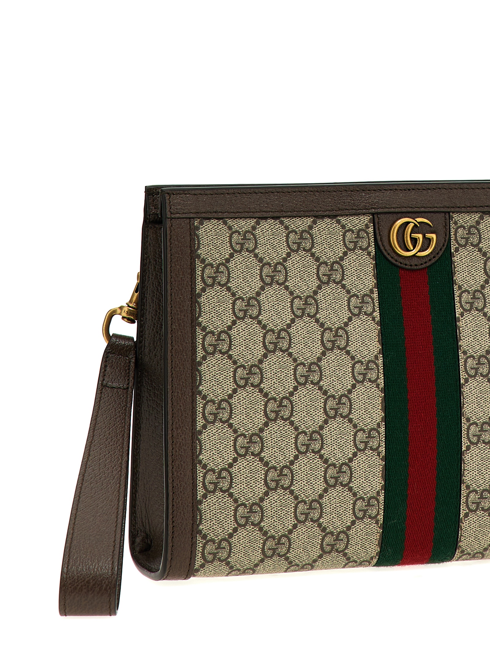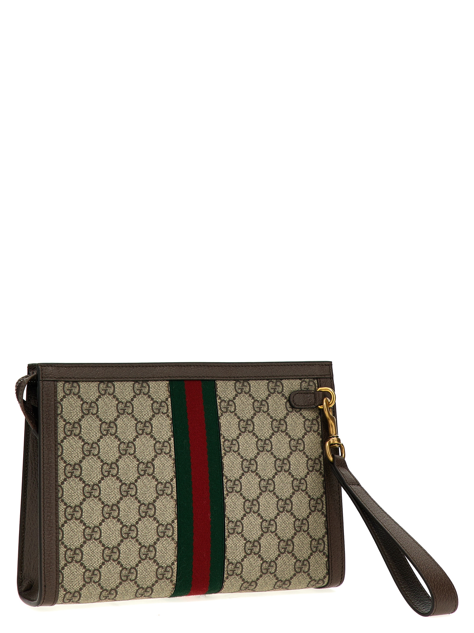‘Ophidia GG’ clutch bag in GG Supreme fabric with leather details, zip closure, removable wrist handle.