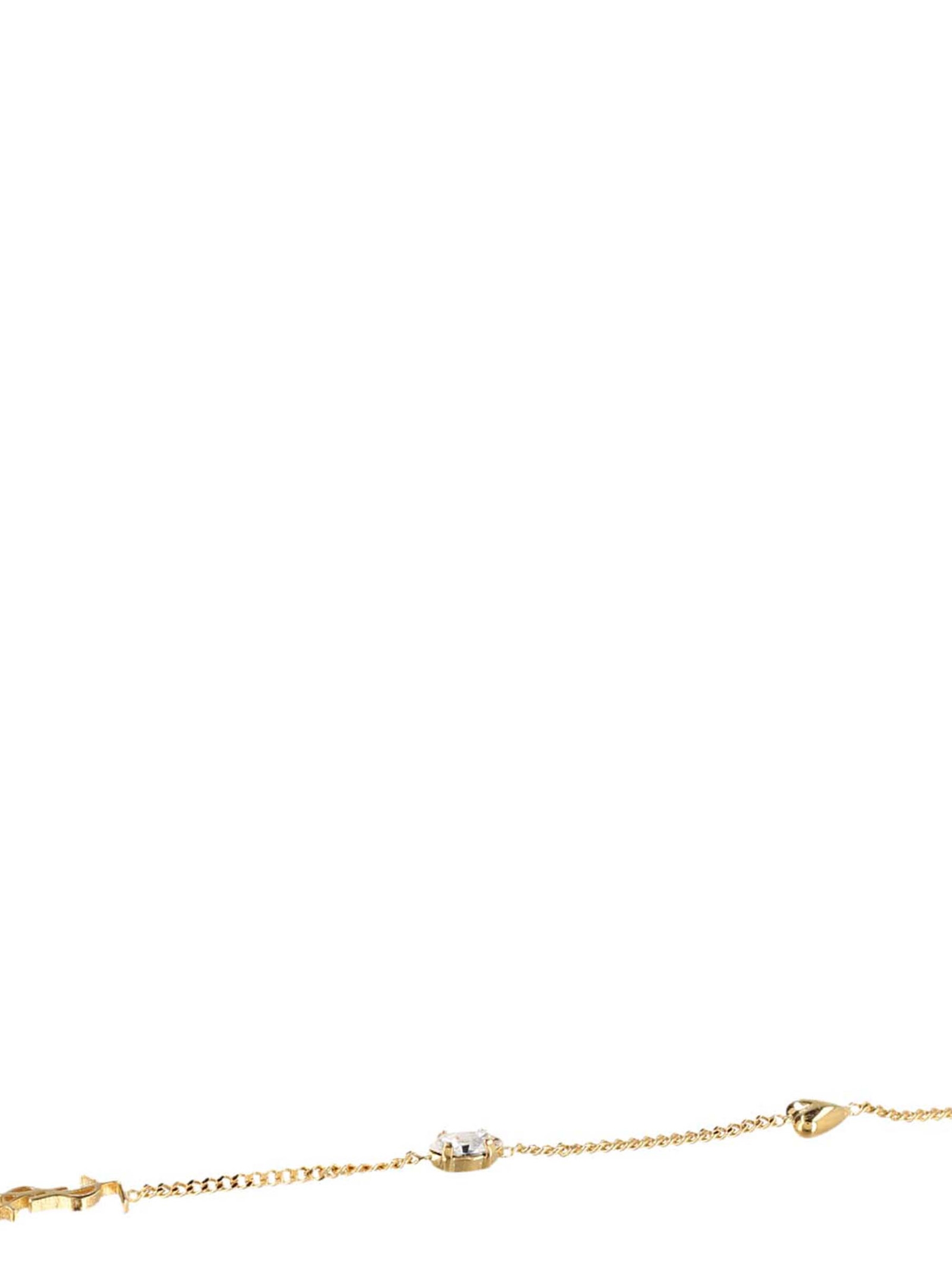 ‘Opyum’ gold metal bracelet with logo, crystal and heart charm.