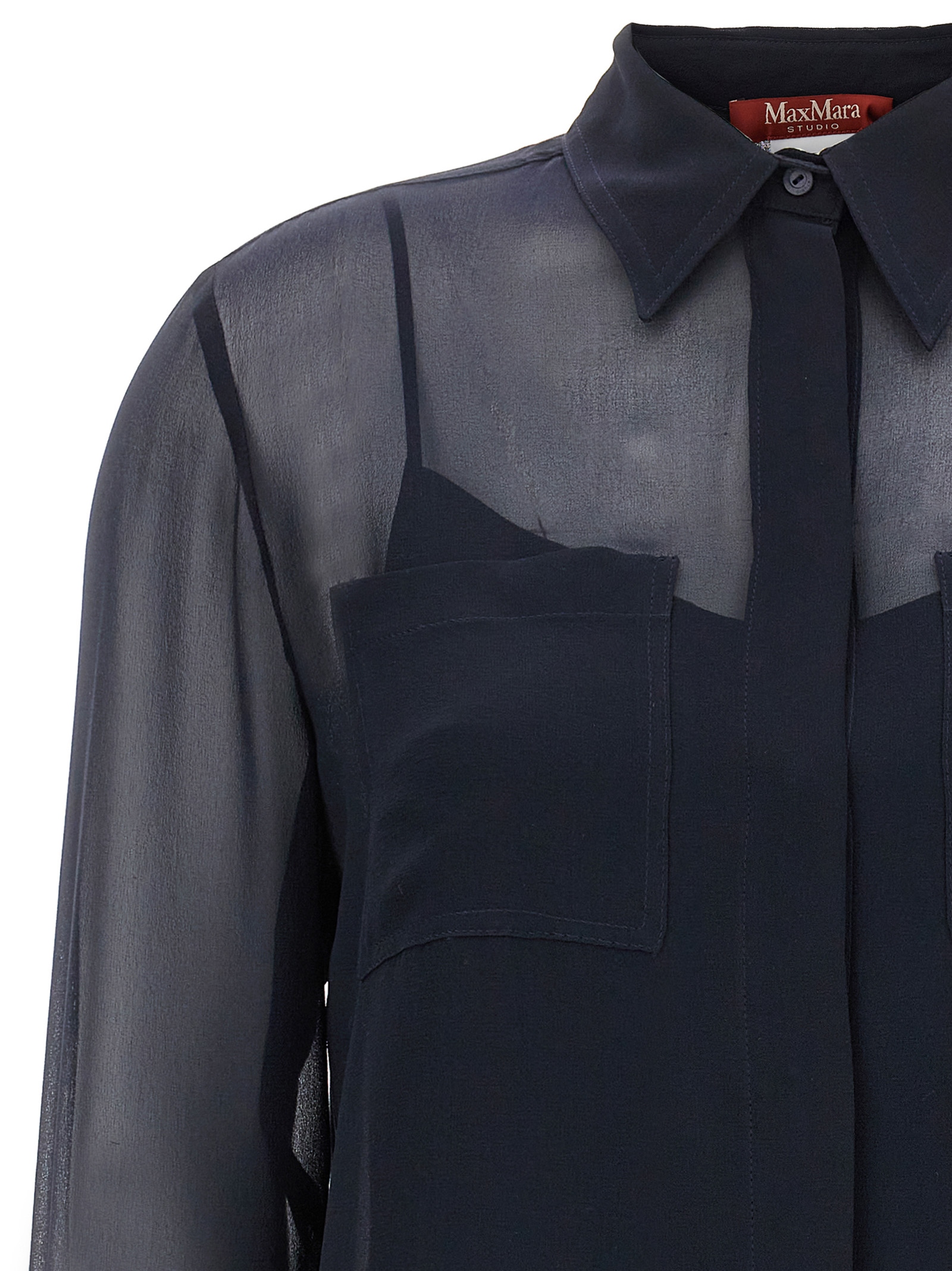 ‘Orietta’ silk shirt with concealed button closure and double chest pocket.