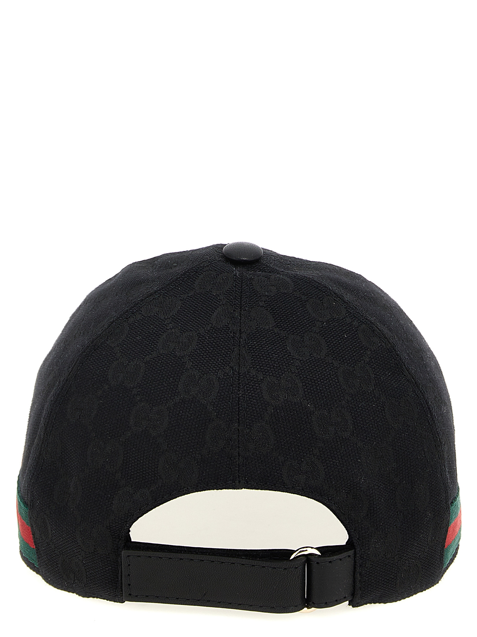 Original GG’ fabric cap with all-over logo and ‘Web’ band, leather details, back strap with velcro closure.