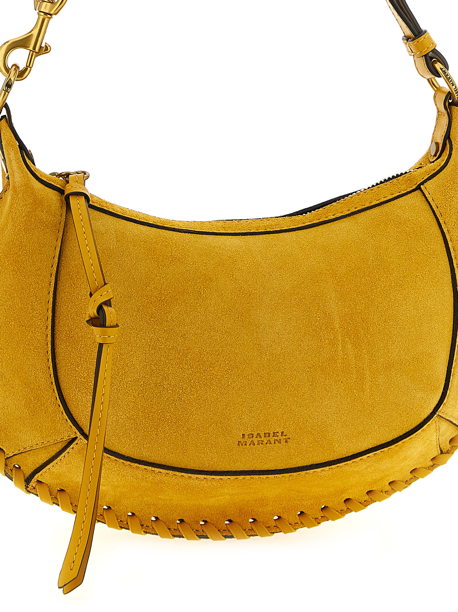 Oskan Moon’ suede shoulder bag with woven leather piping, zip closure, adjustable and removable shoulder strap.