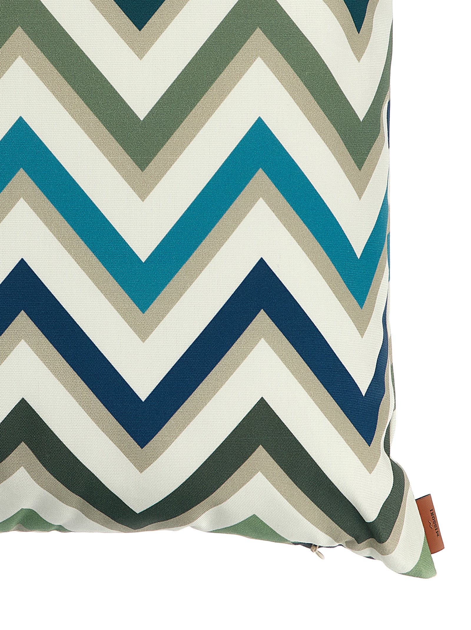 The characteristic zigzag of the Maison animates the eye-catching “Watamu” cushion by Missoni. Emblematic of the brand, this dynamic motif comes in fresh multicolored shades of apple green, gray and blue. The design, handcrafted in weatherproof fabric to ensure maximum durability, elevates garden and outdoor seating in an instant.