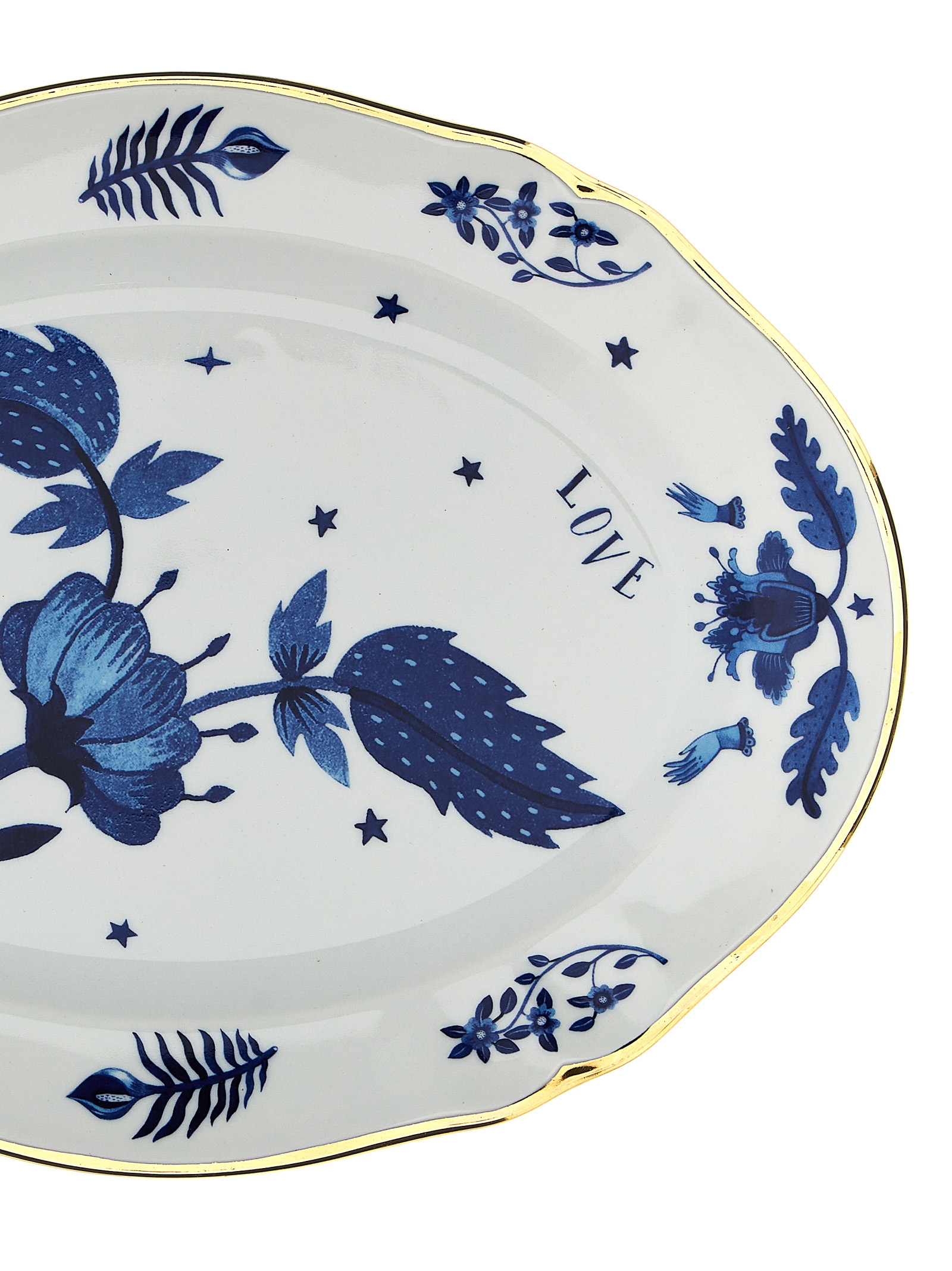 Oval serving plate in ceramic with print.