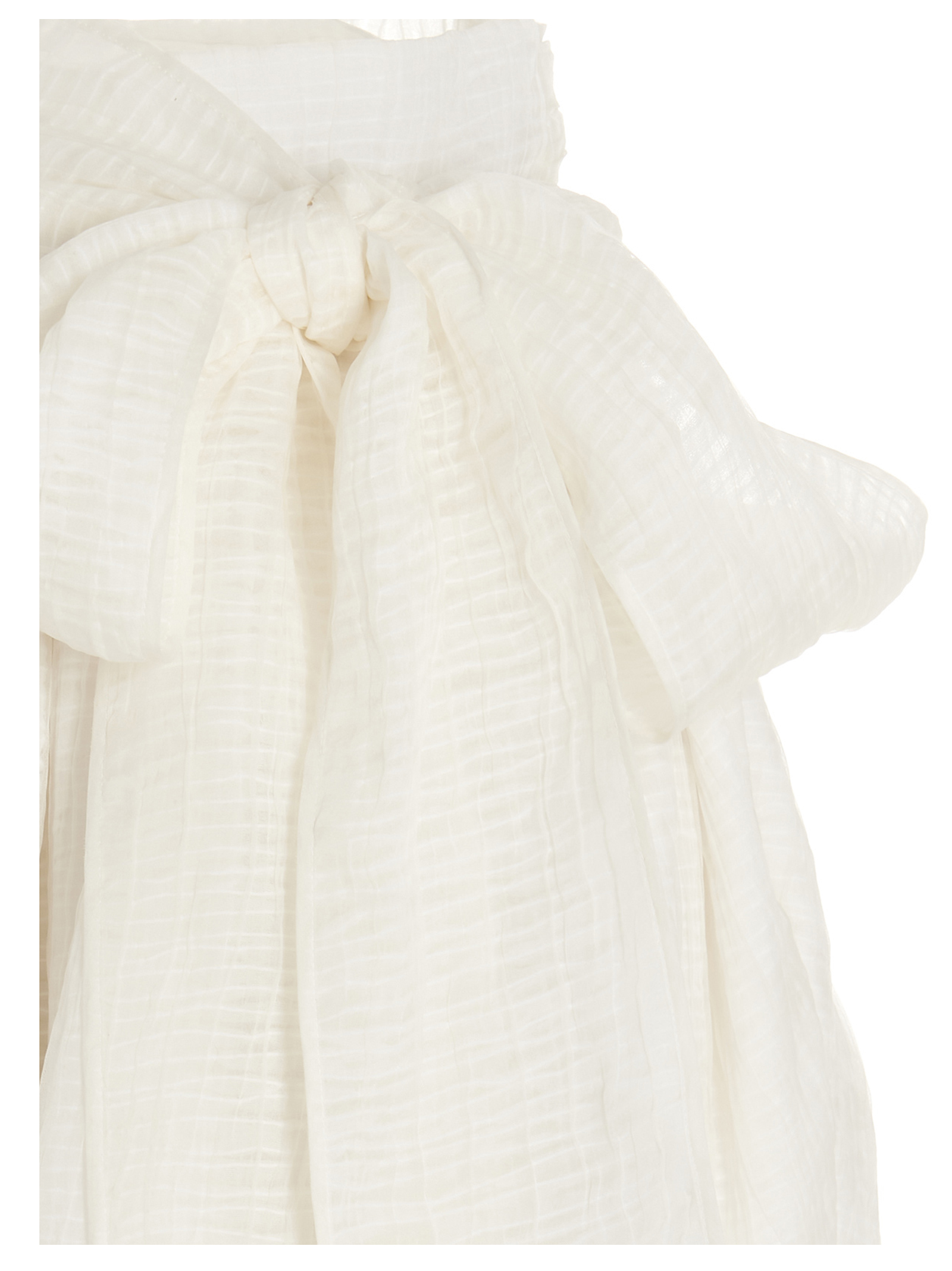 Gauze silk blend oversize skirt with check pattern, pockets and maxi bow sash tie belt.