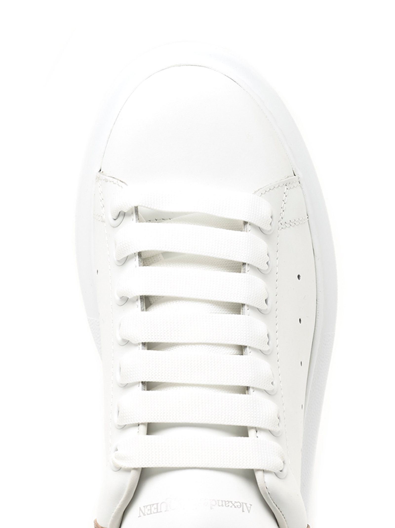 Alexander McQueen iconic ‘Oversize sole’ sneakers featuring a contrasting metallic pink heel tab and logo print.