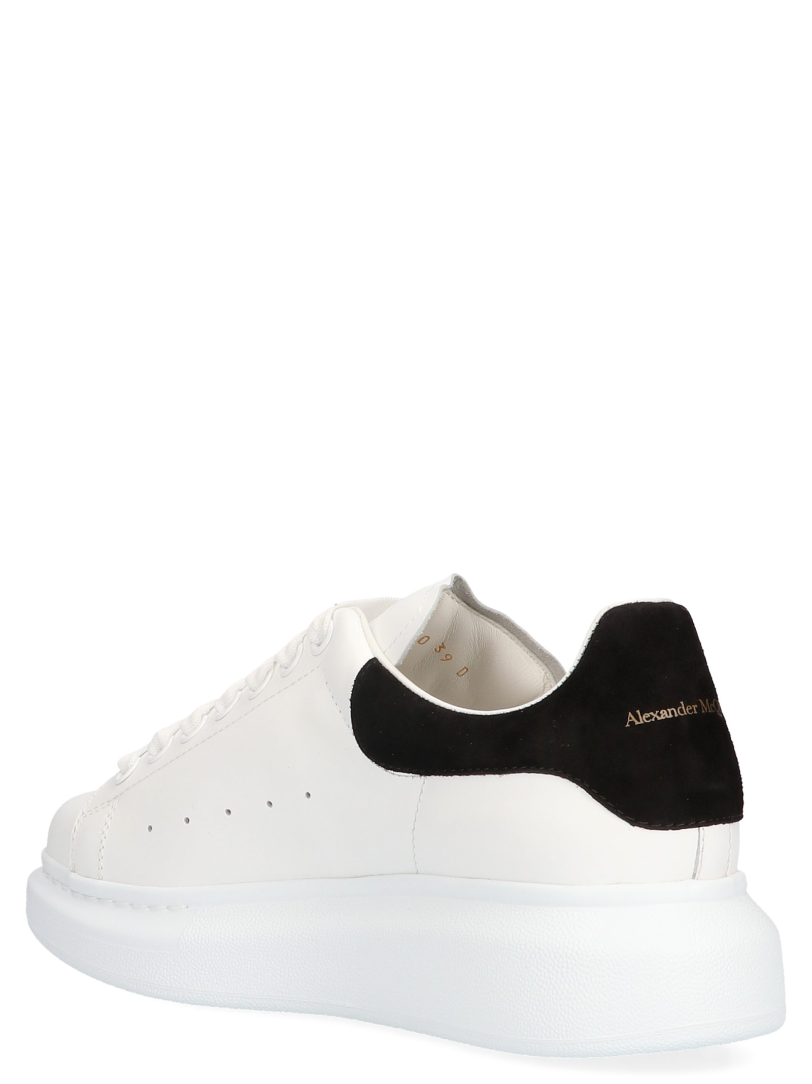 Alexander McQueen iconic ‘Oversize sole’ lace-up leather sneakers, iconic contrast suede insert on the heel tab.