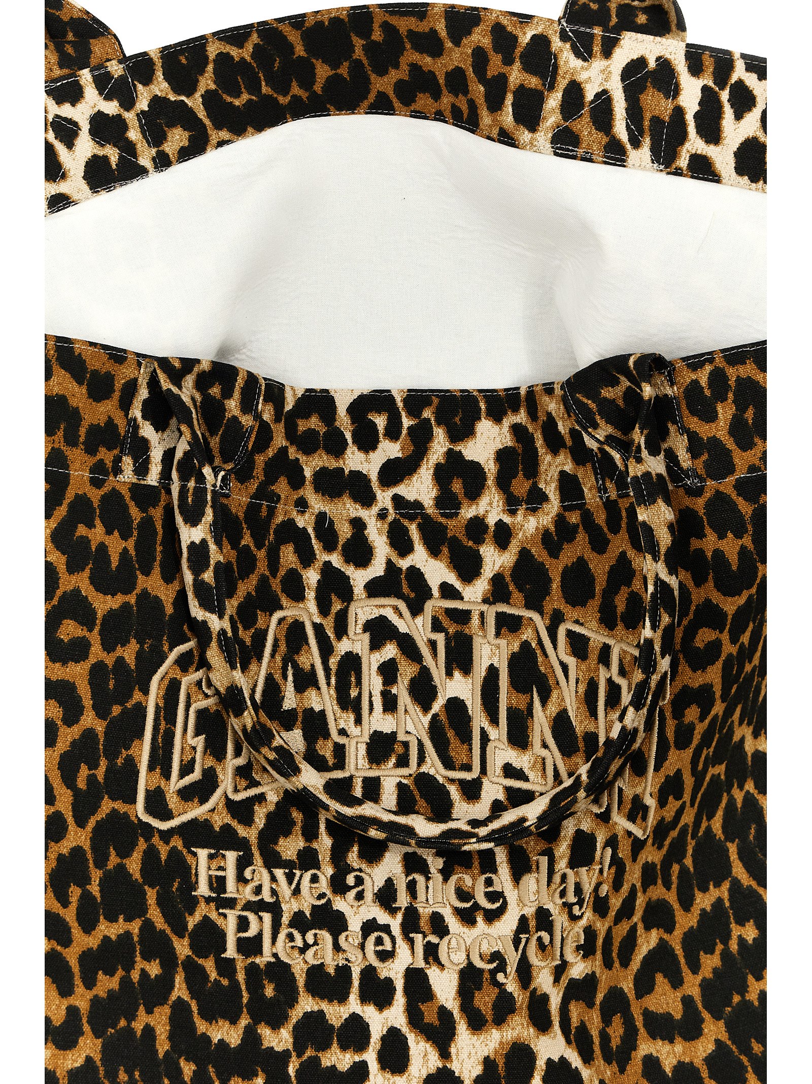 Oversize leopard print canvas shopping bag with front logo embroidery, double handle.