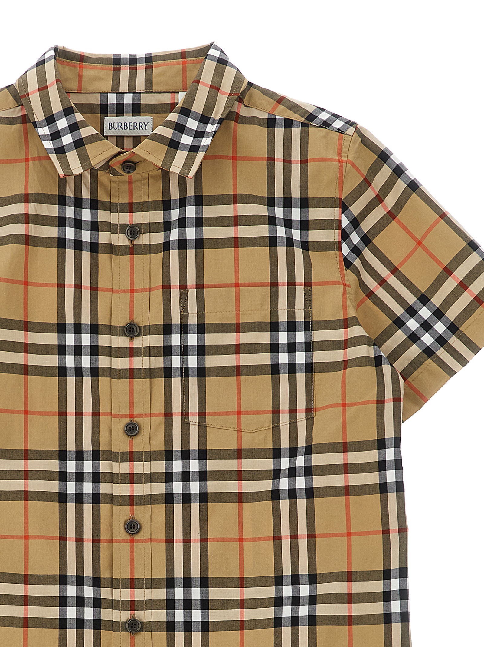 ‘Owen’ cotton woven shirt with Burberry Check, chest pocket, front button closure, short sleeves.