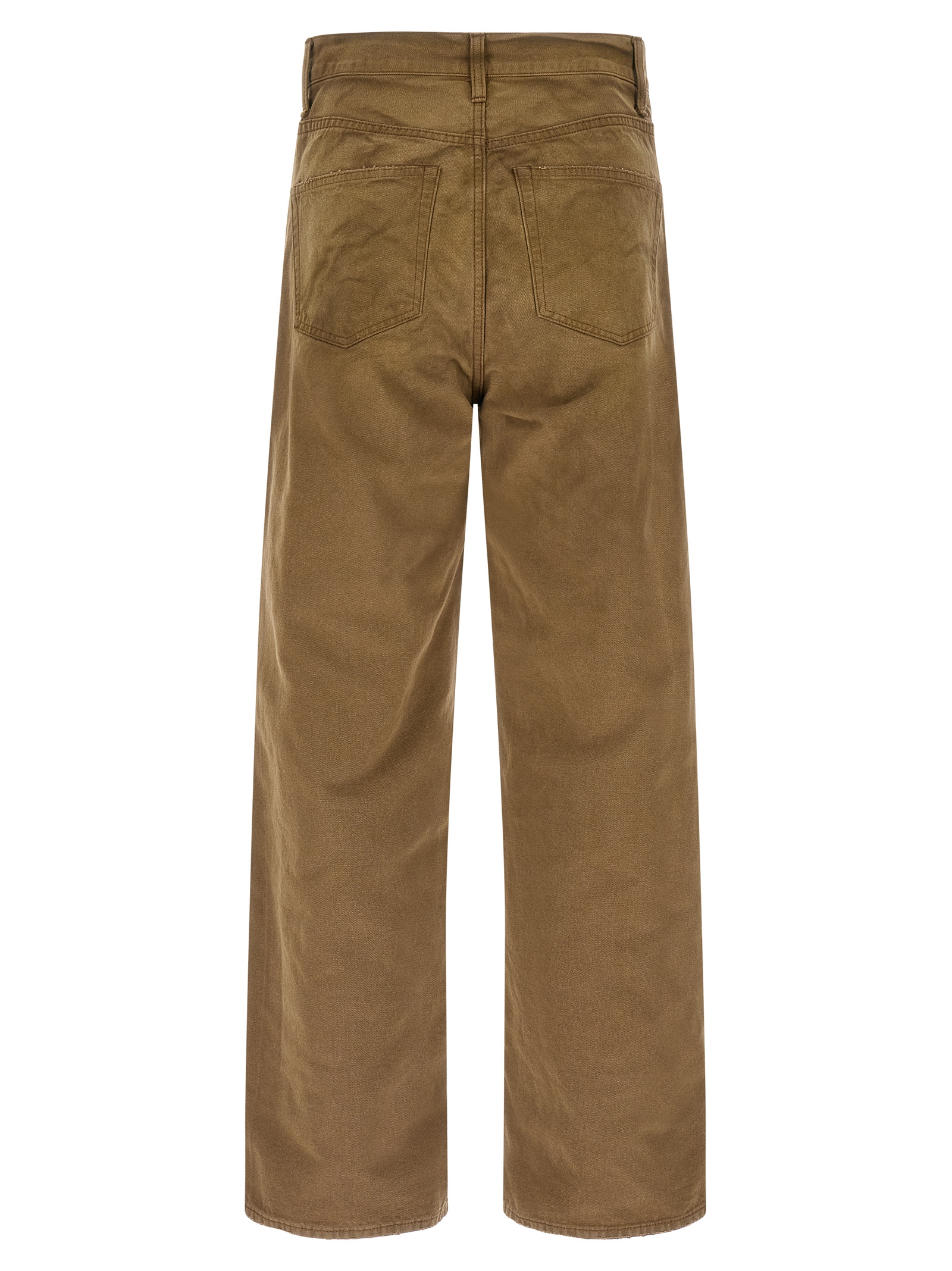 ‘Oxford dyed Vintage’ cotton trousers dyed with used-effect color variations, dropped horse, straight and wide leg, 5 pockets, front button and zip closure.