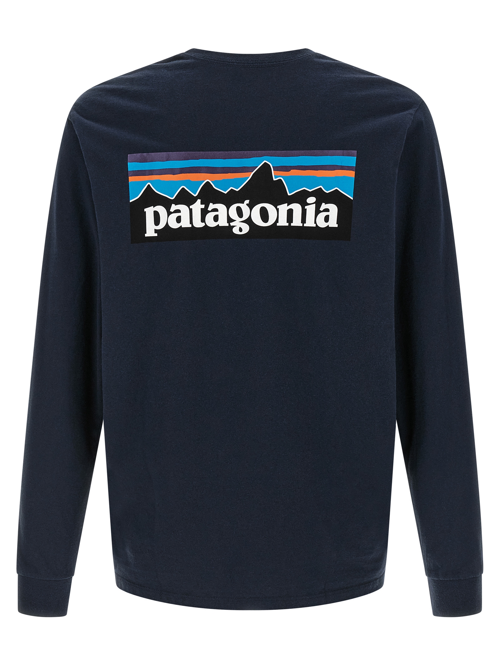 ‘P-6 Logo Responsibili-Tee®’ cotton blend jersey t-shirt with front logo print, crew neck, back graphic print, long sleeves with dropped shoulders.