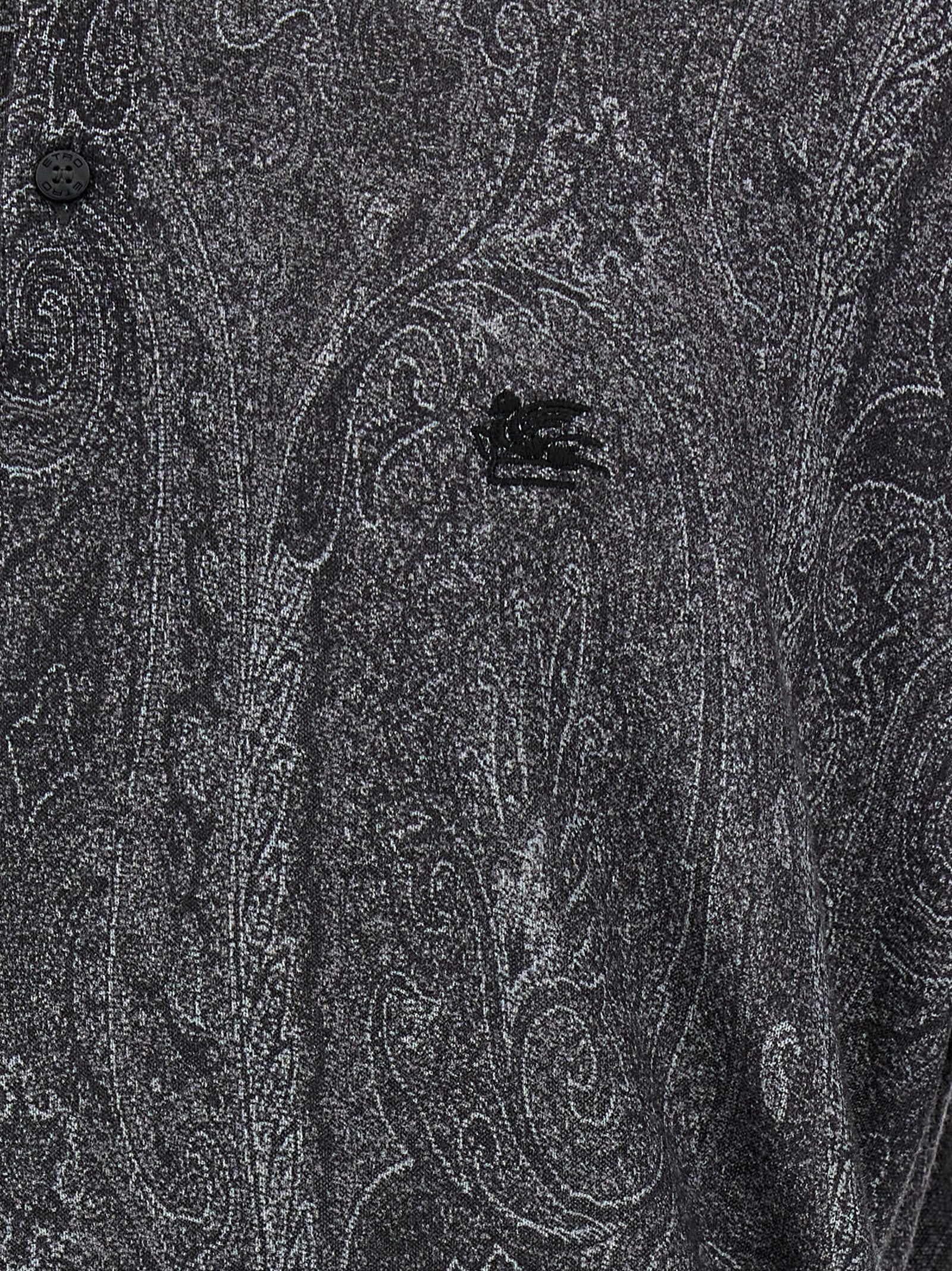 Polo shirt in silk and cashmere with all-over ‘Paisley’ print, front logo embroidery, and short sleeves.