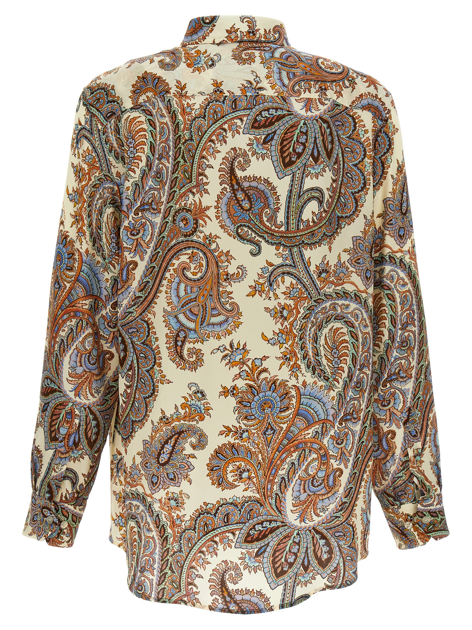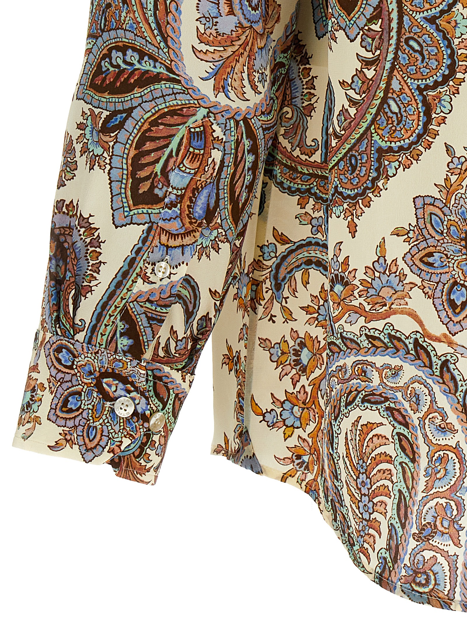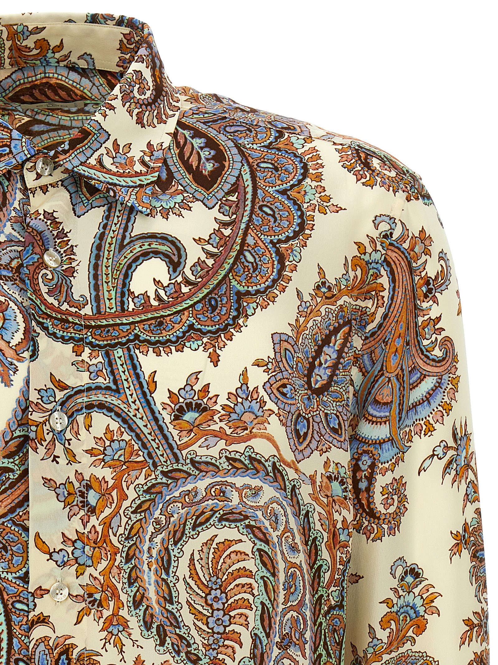 Paisley silk shirt with all-over print and button closure.