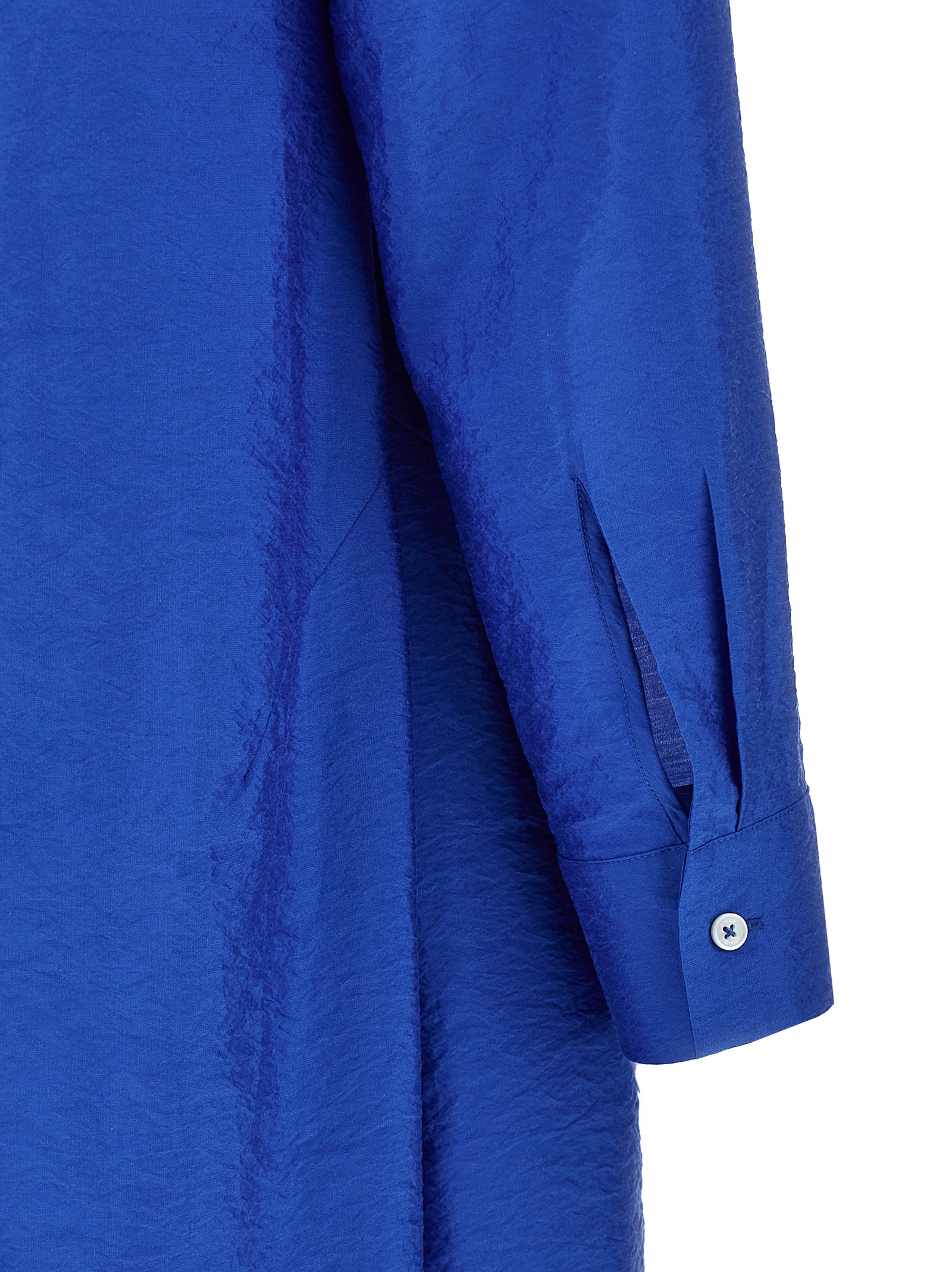 ‘Parachute’ wrinkled-effect silk blend dress with long chemisier style and covered button closure.