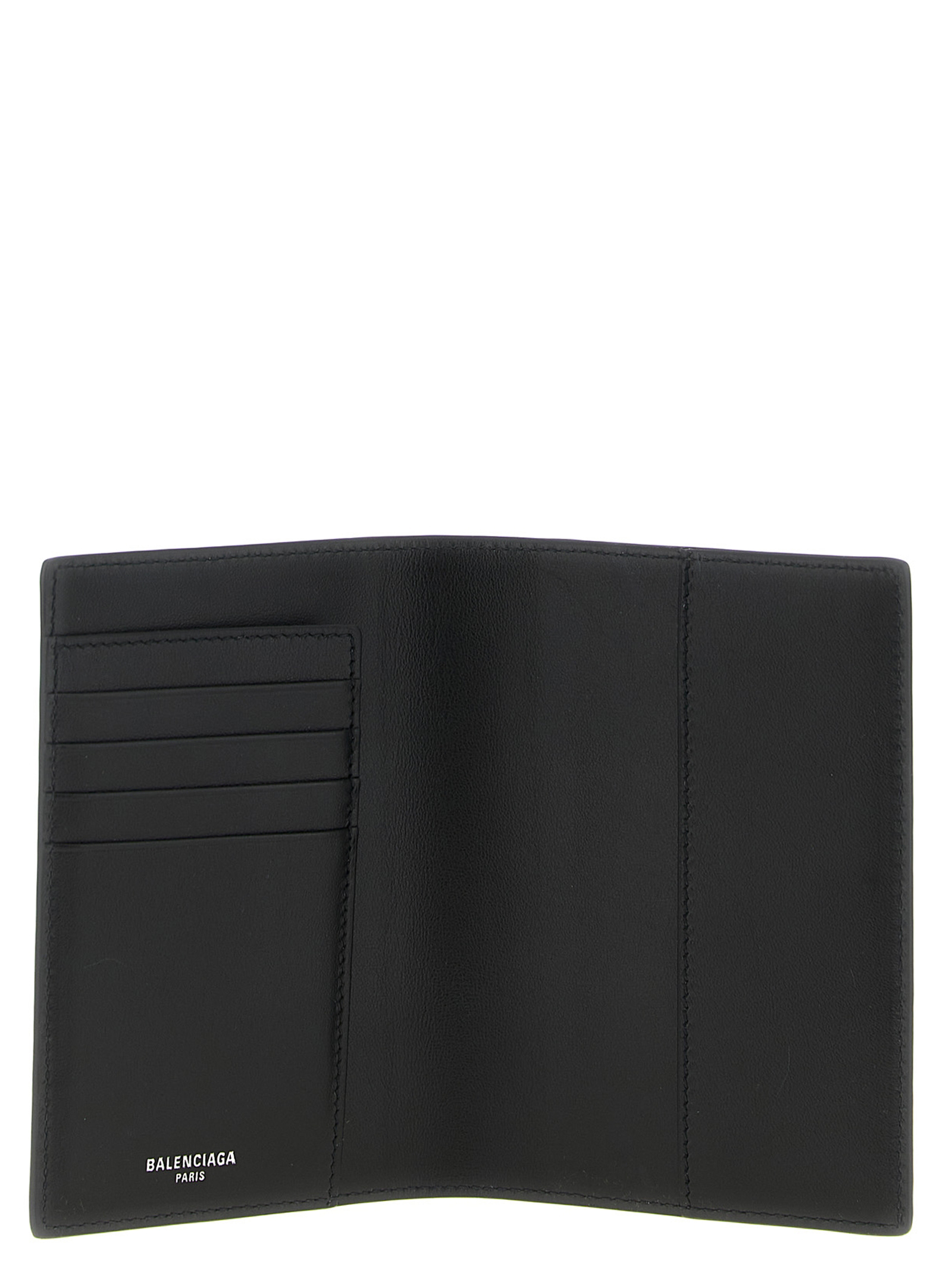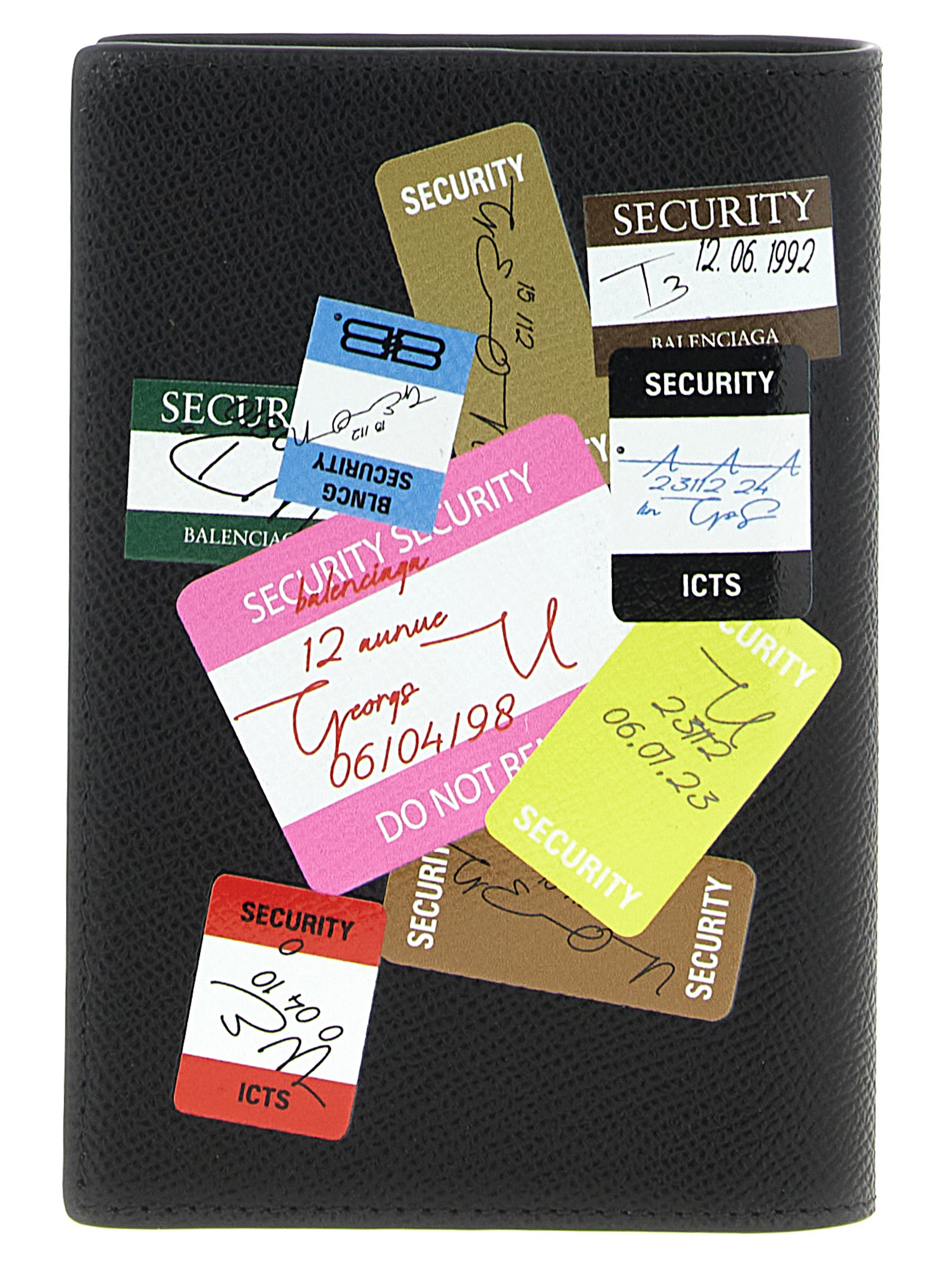 Leather passport holder. Prints with all-over logo, inner card holder.