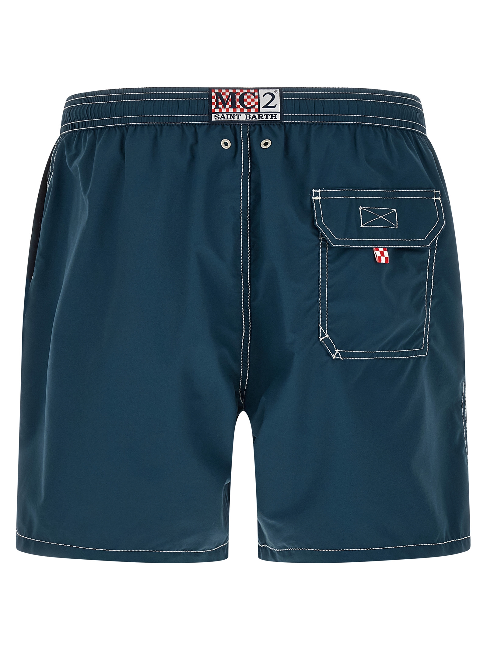 ‘Patmos’ nylon swimsuit with elastic waistband and drawstring, central back logo patch and front logo embroidery detail, side pockets and back pocket with flap that can be closed.