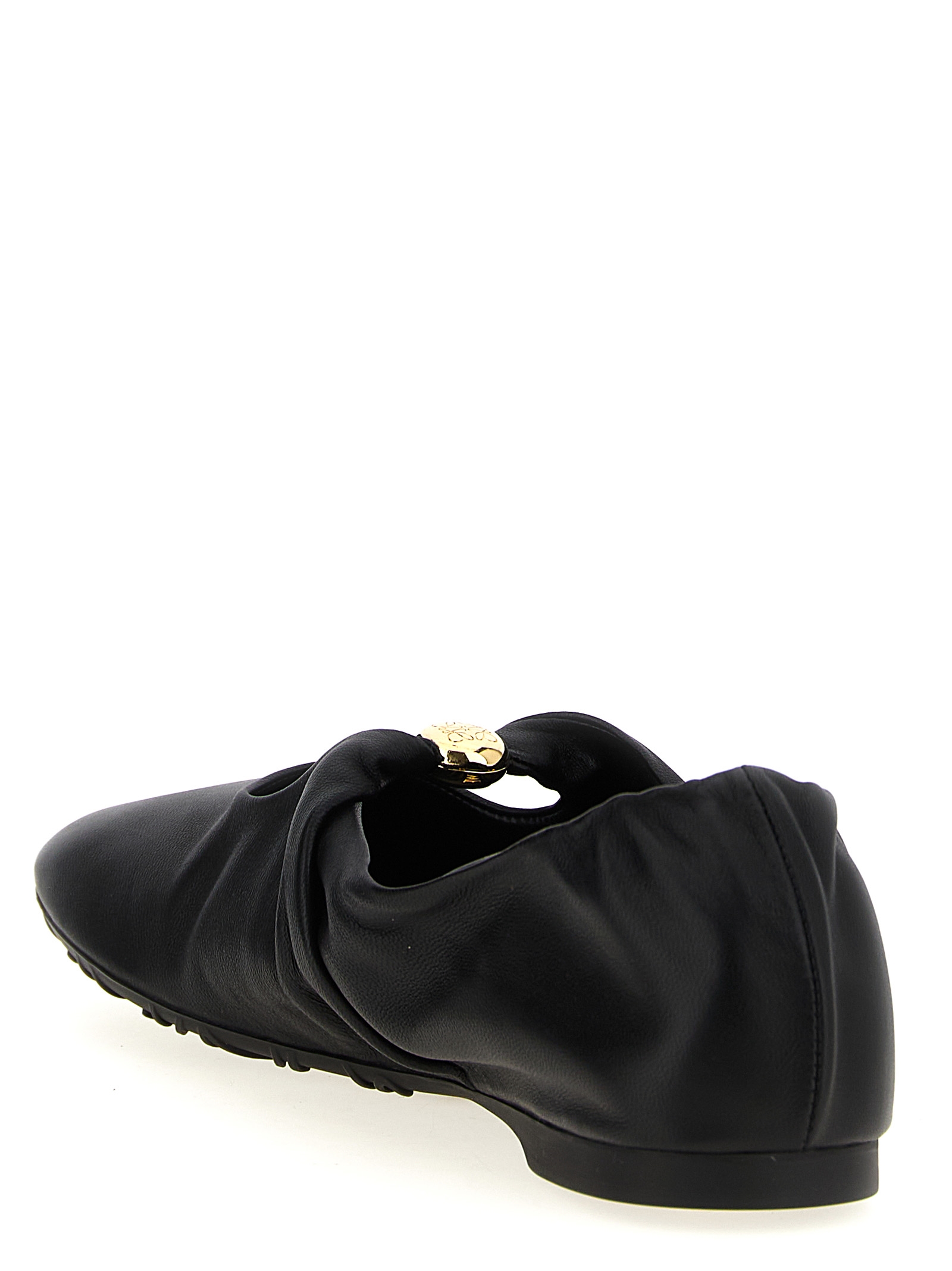 ‘Pebble Soft’ lamb nappa ballet flats, flexible upper, emblematic petal-shaped toe, strap on the instep with metal detail with Anagram engraving, padded insole, rubber sole.