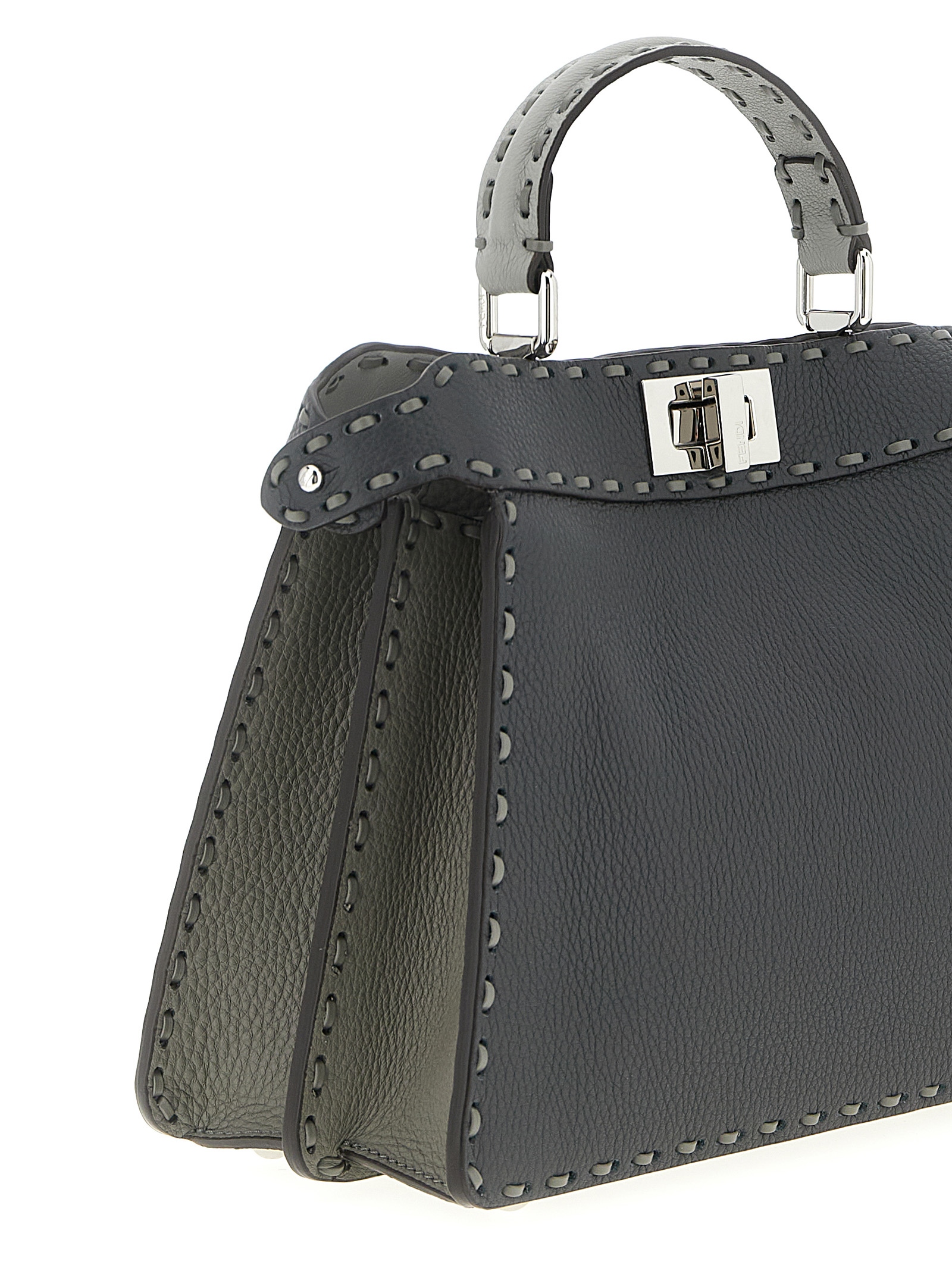 ‘Peekabo ISeeU small’ Roman Leather handbag, finished with 556 macro stitching, fixed handle, iconic turn lock on the front and zip closure on the back, fixed handle, adjustable and removable shoulder strap.