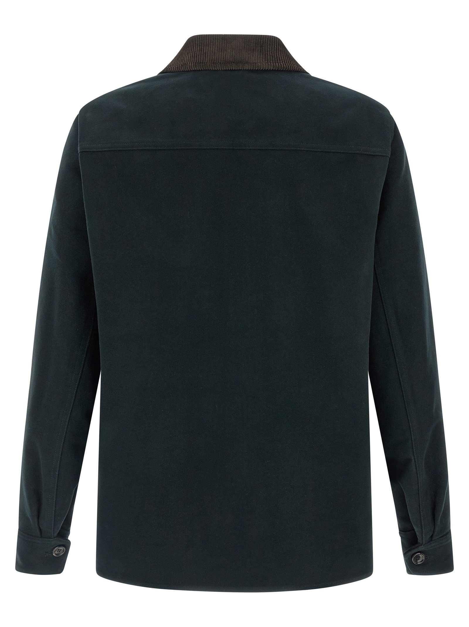 Pure cotton jacket with workwear model, pocket with tone-on-tone ‘Pegaso’ embroidery, contrast corduroy shirt collar, front button closure, pockets, long cuffed sleeves, side slits, unlined.