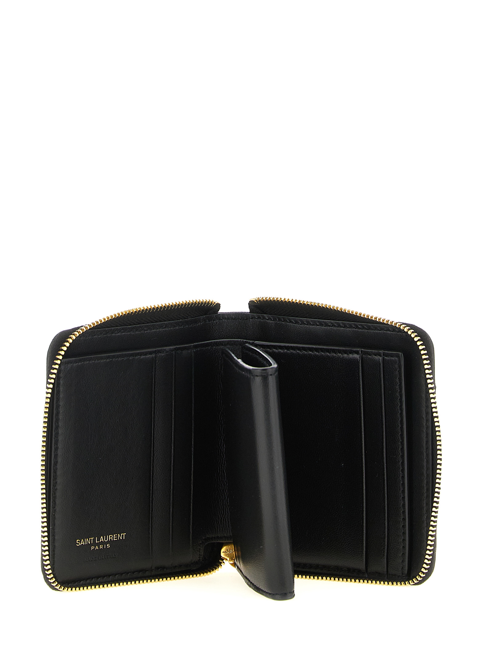 ‘Pegaso’ leather wallet with quilted check stitching, zip closure with zipper puller and antiqued metal ‘Cassandre’ logo.