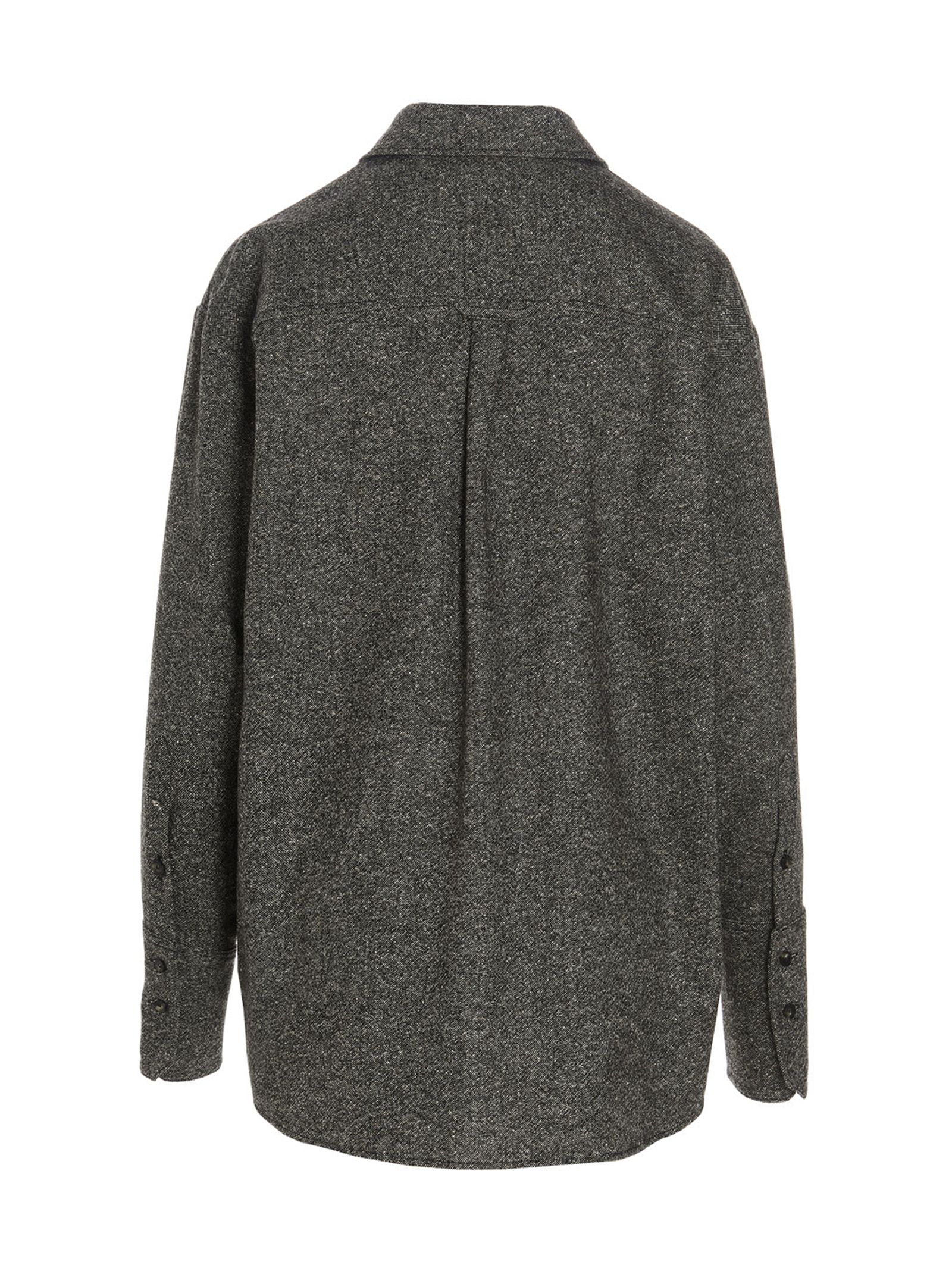 ‘Perim’ virgin wool and silk blend shirt with a button closure, long cuffed sleeves and a chest pocket.
