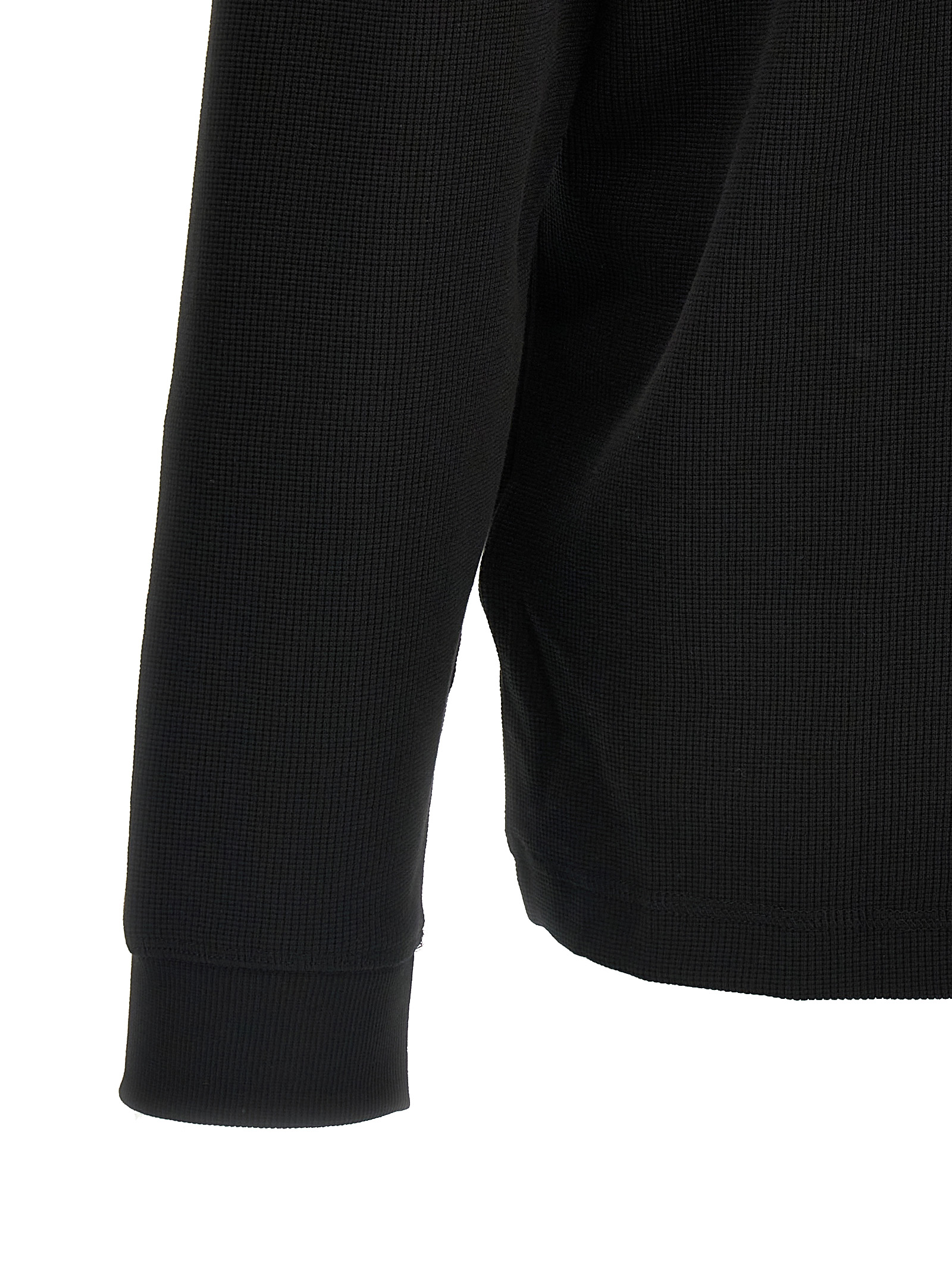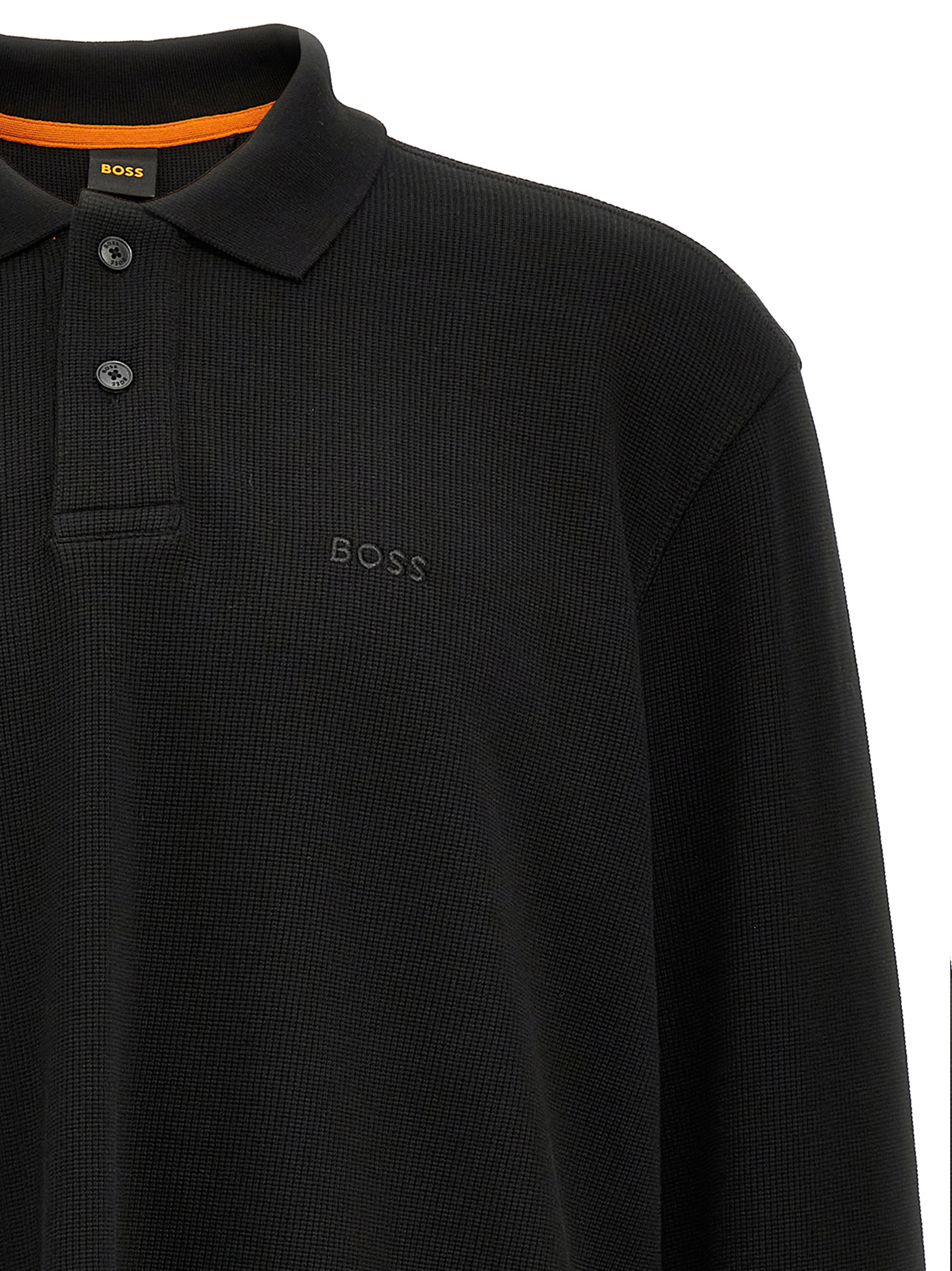 ‘Petempestolong’ honeycomb cotton blend polo shirt with tone-on-tone front logo embroidery, collar and buttons, long cuffed sleeves.