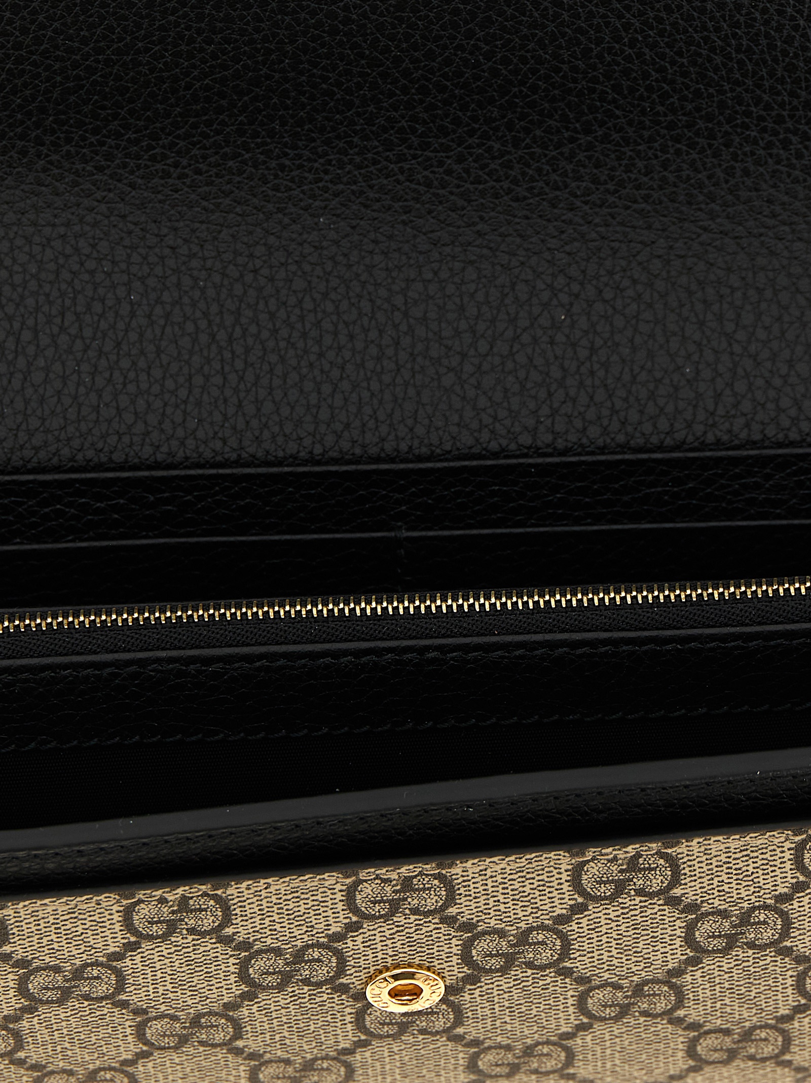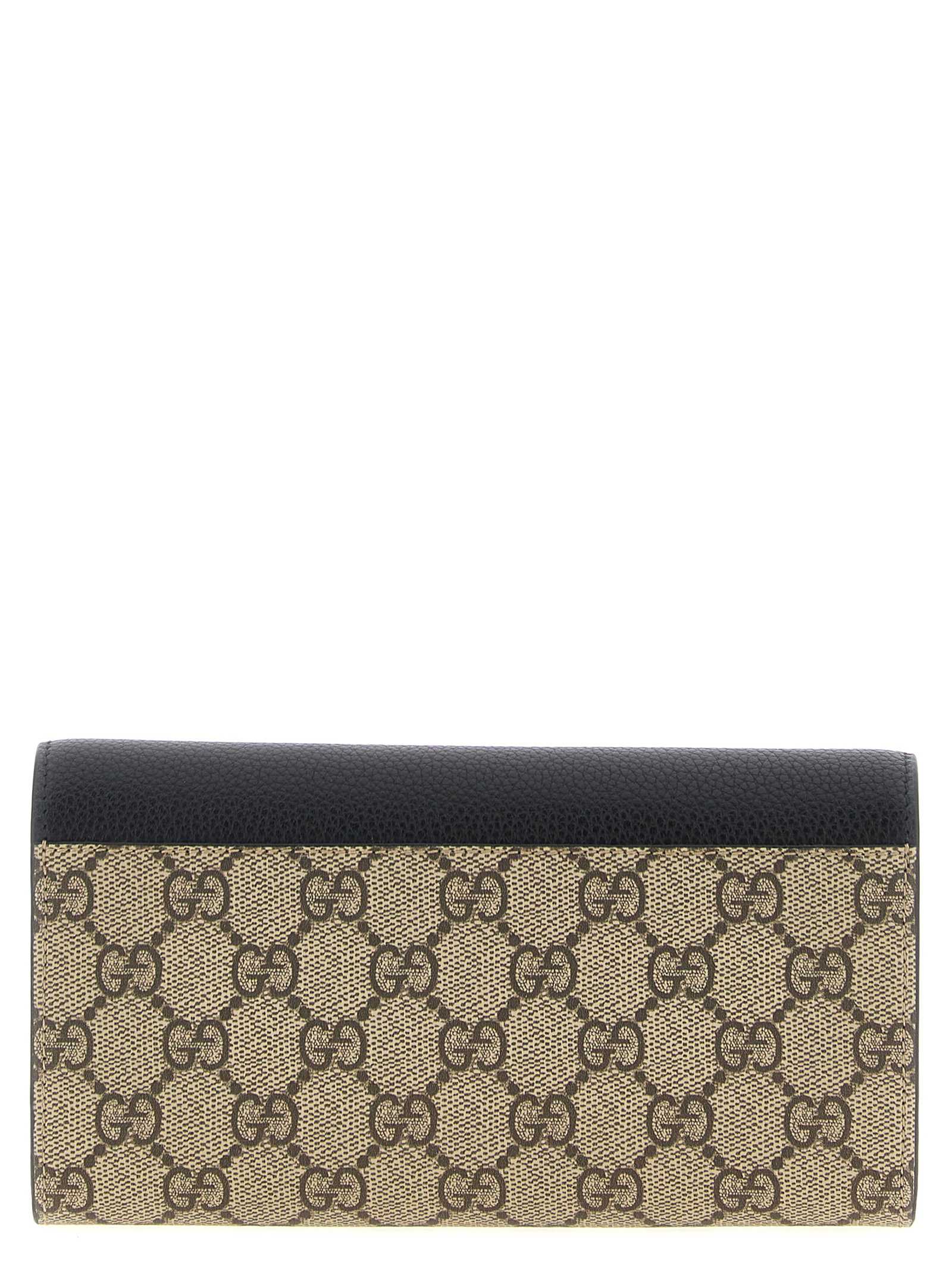 ‘Petit Maramont’ wallet in Original GG fabric and hammered leather, flap closure with snap button and double G metal on the front.