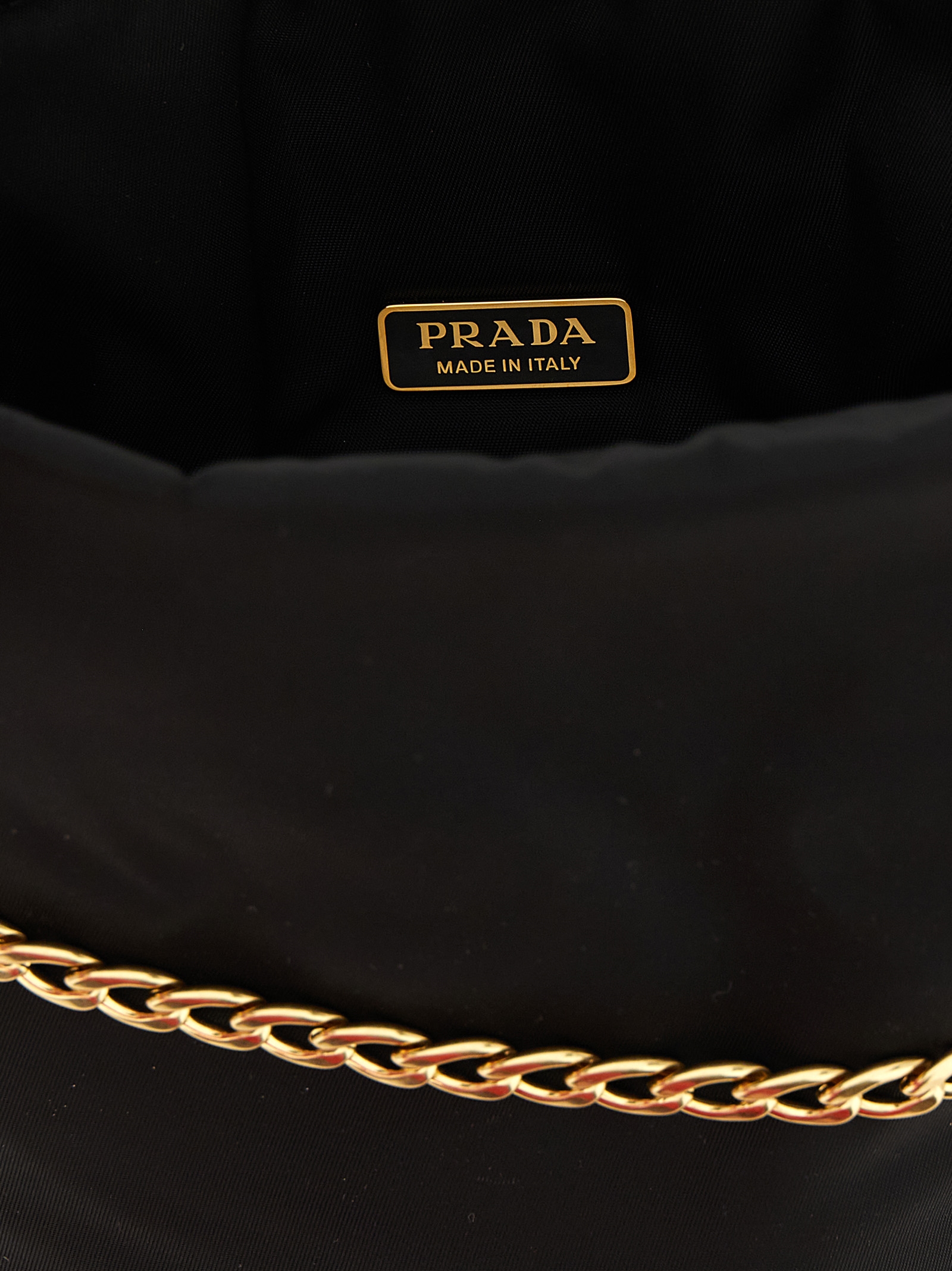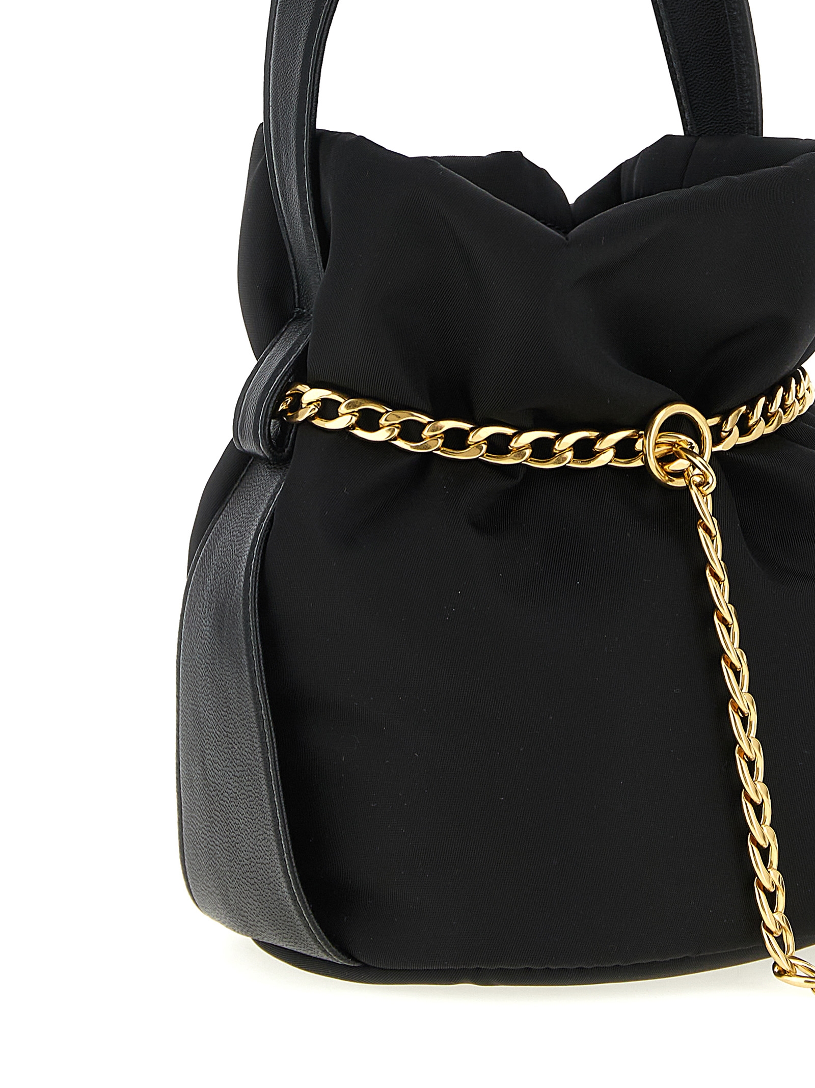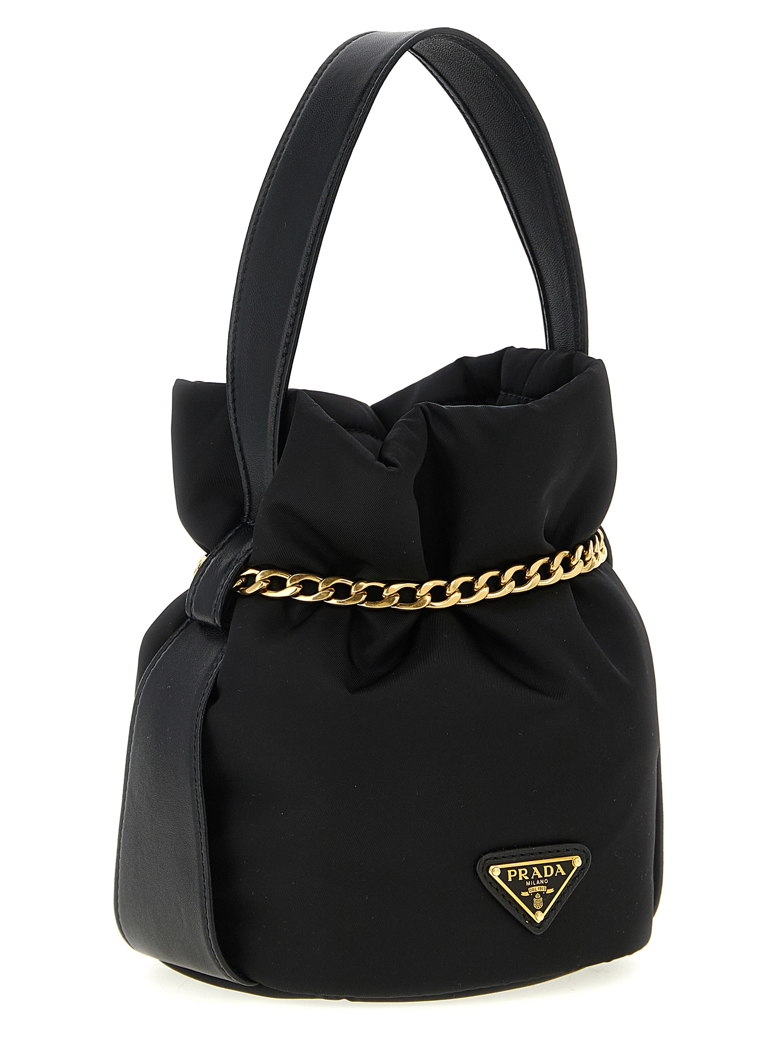 ‘Petit Sac’ bucket handbag, nappa handle, metal trim, front enameled metal triangle logo, adjustable chain closure.