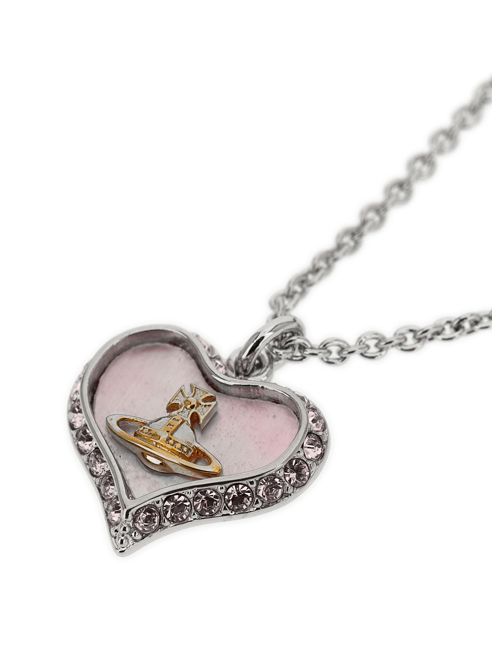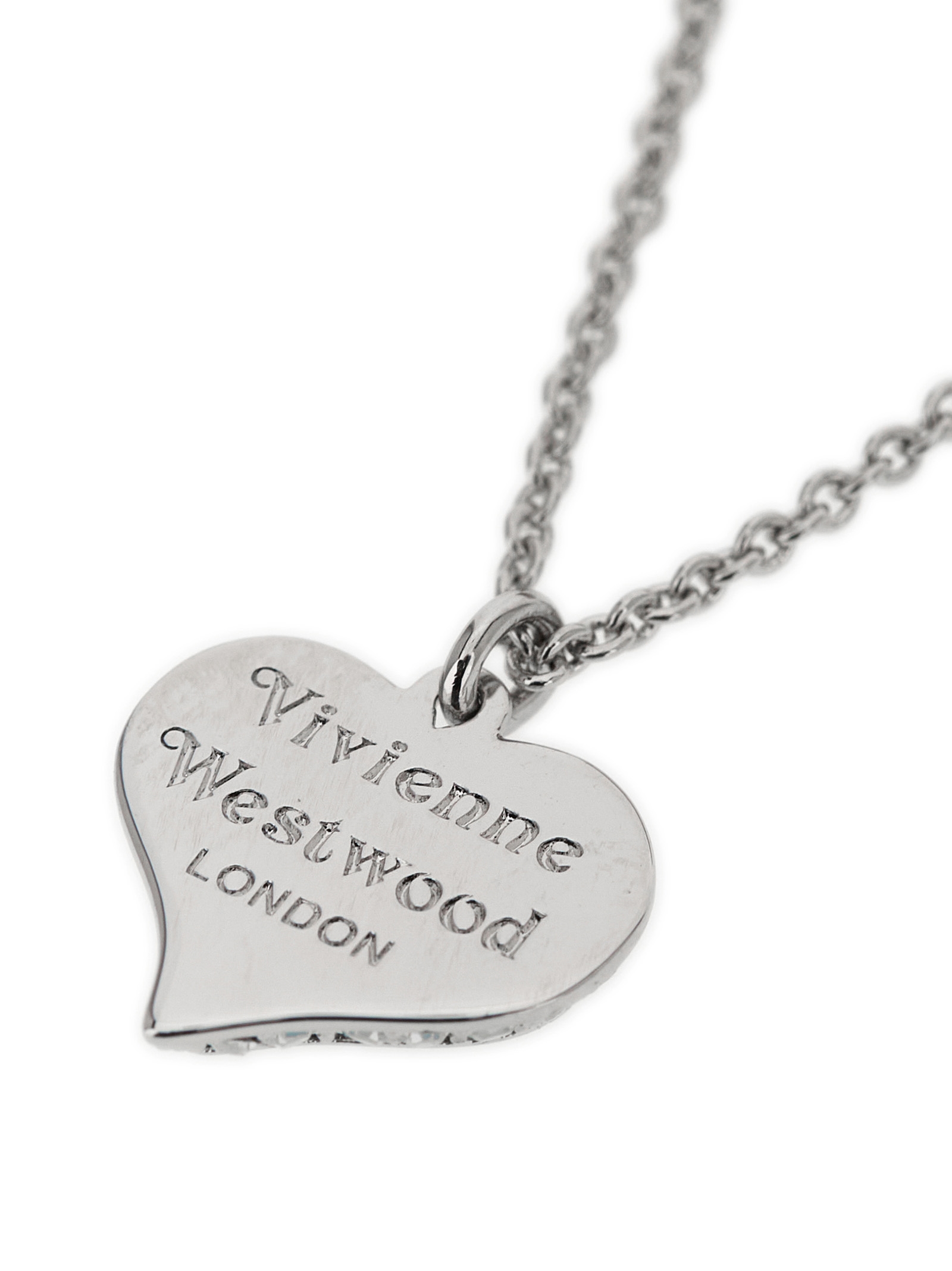 Petra’ necklace in silver-plated metal with heart-shaped pendant with rhinestones and embossed logo, and snap hook closure.