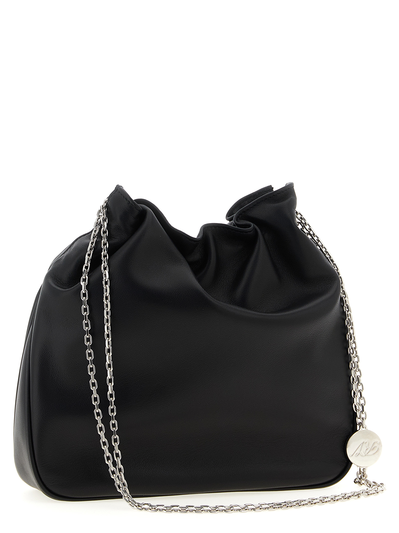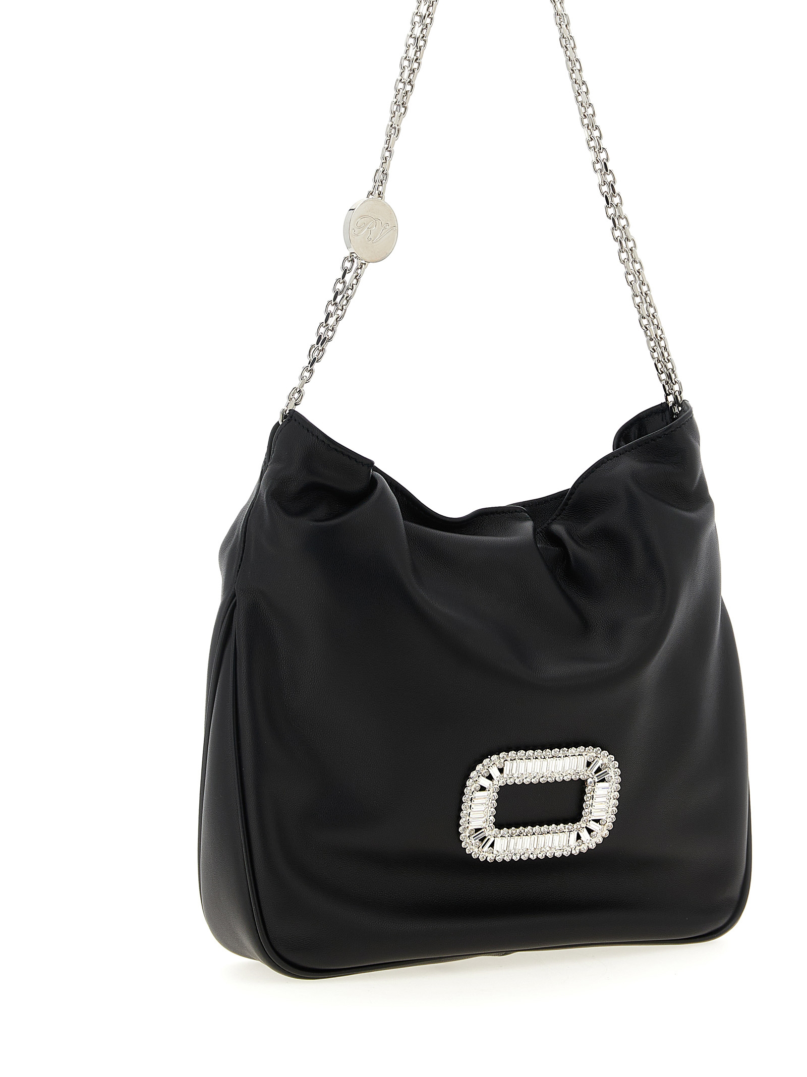 Nappa mini shoulder bag, Pilgrim buckle with hand-applied crystals, double sliding chain handle.