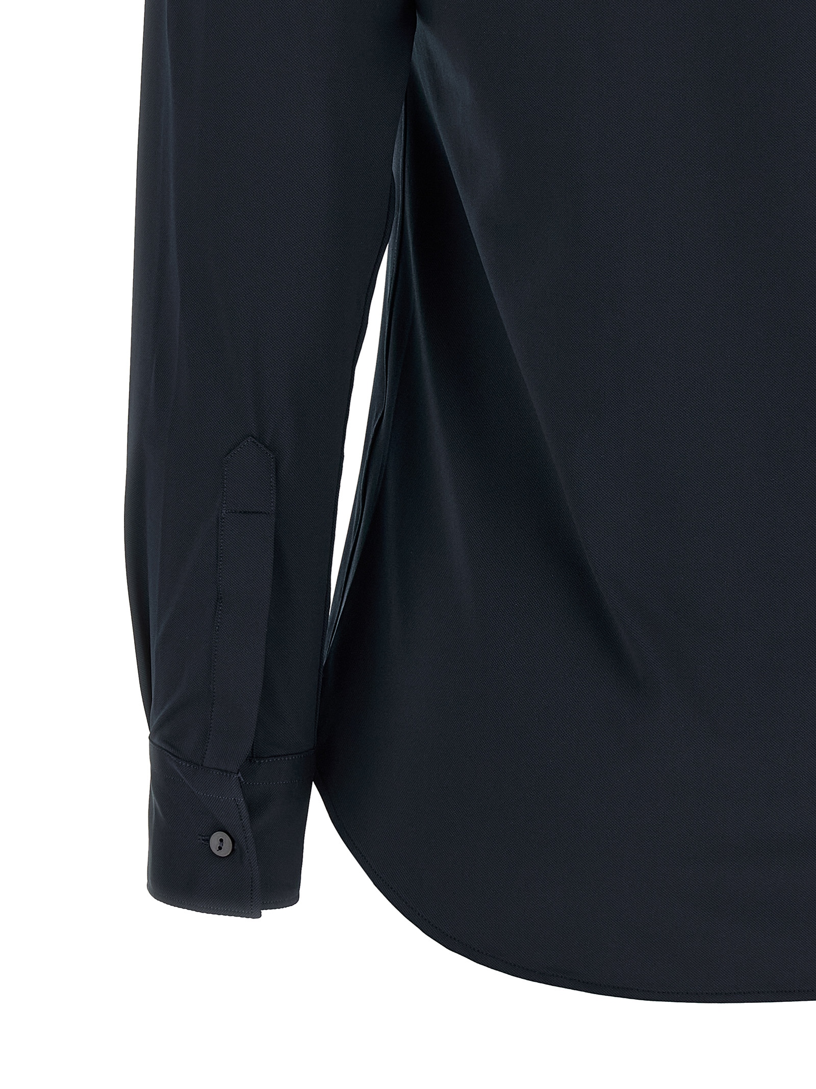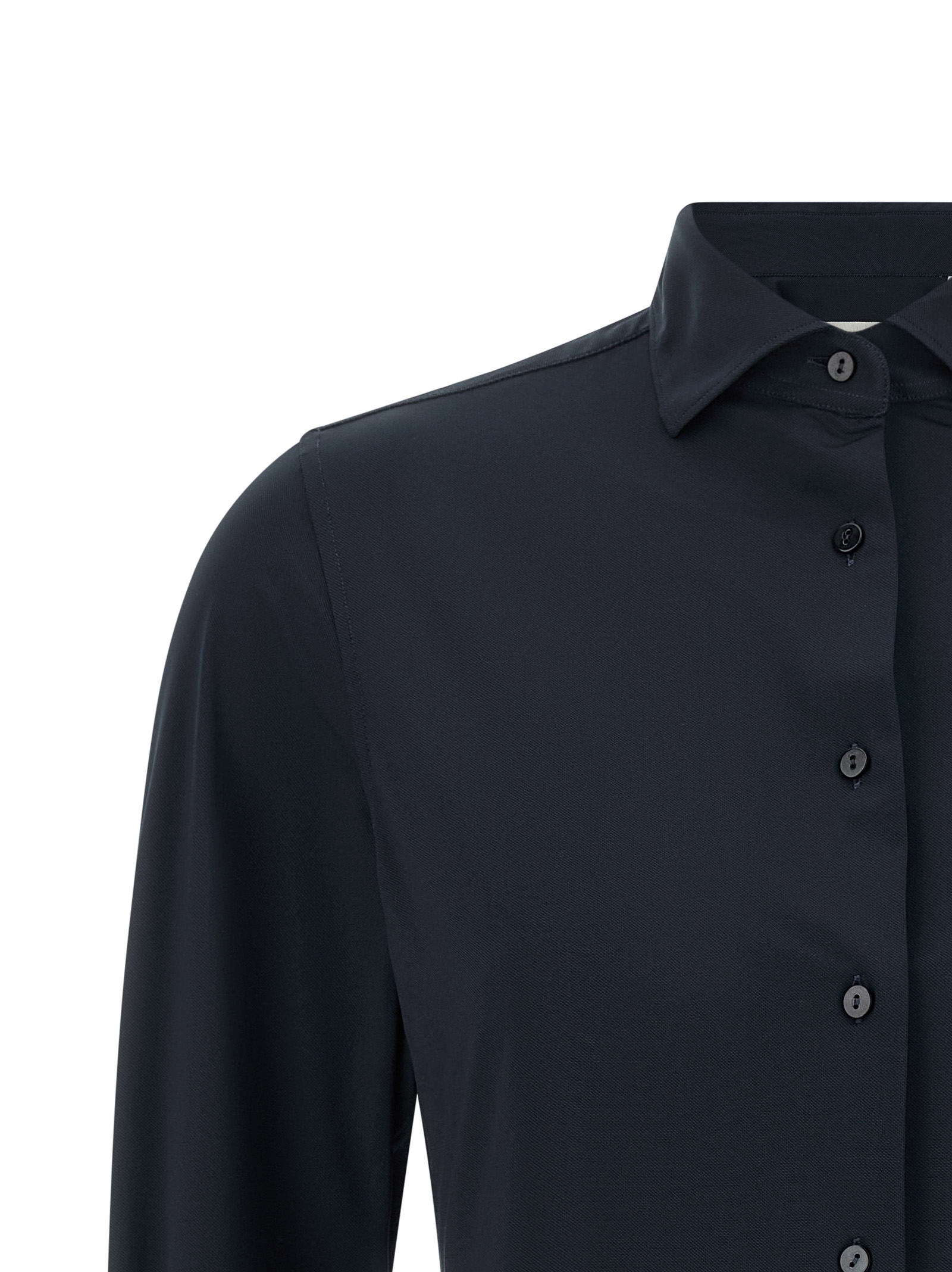 ‘Pina’ shirt – ‘Active’ line in stretch technical fabric with French collar, front button closure, long sleeves with cuffs, rounded hem.