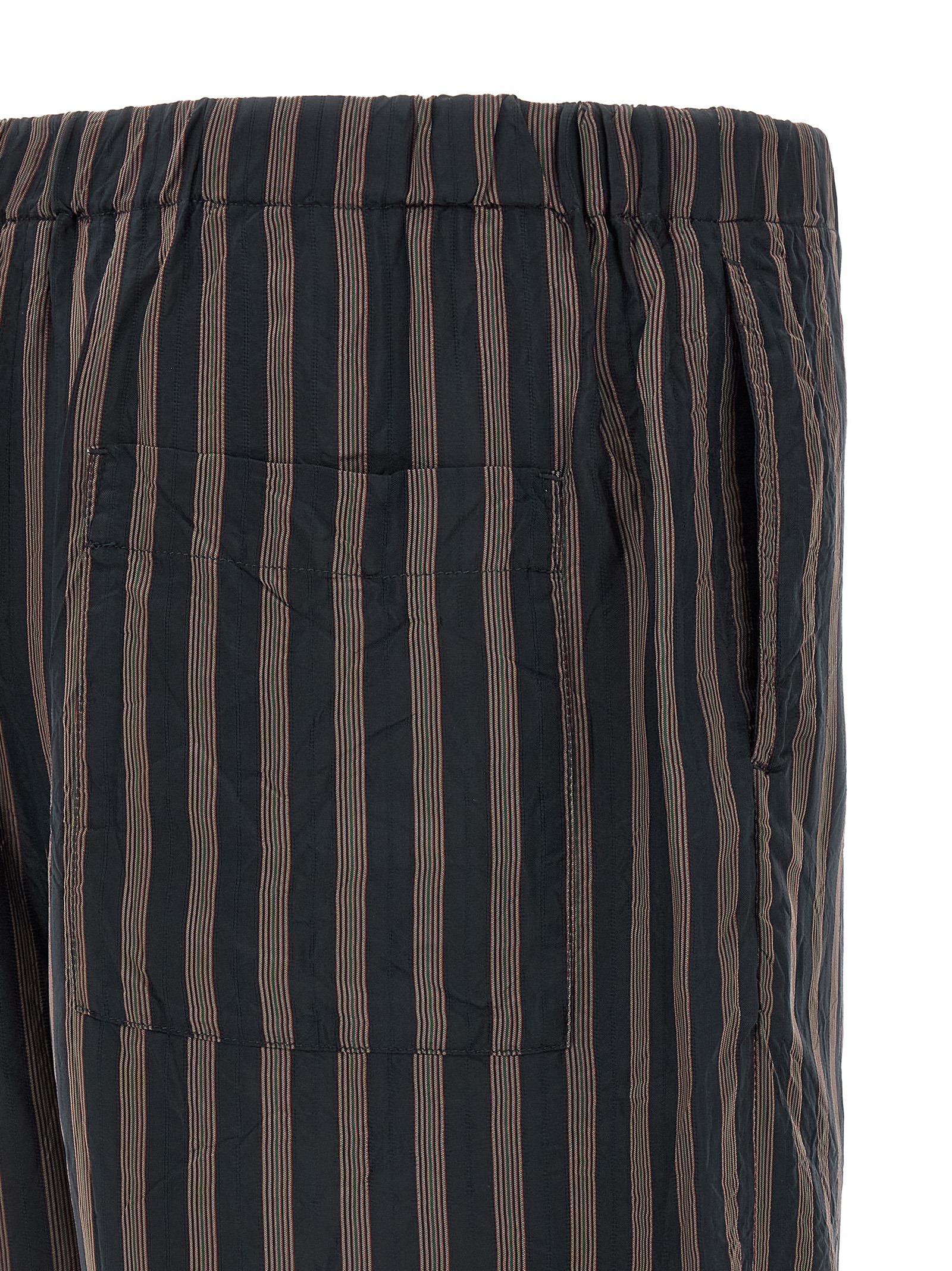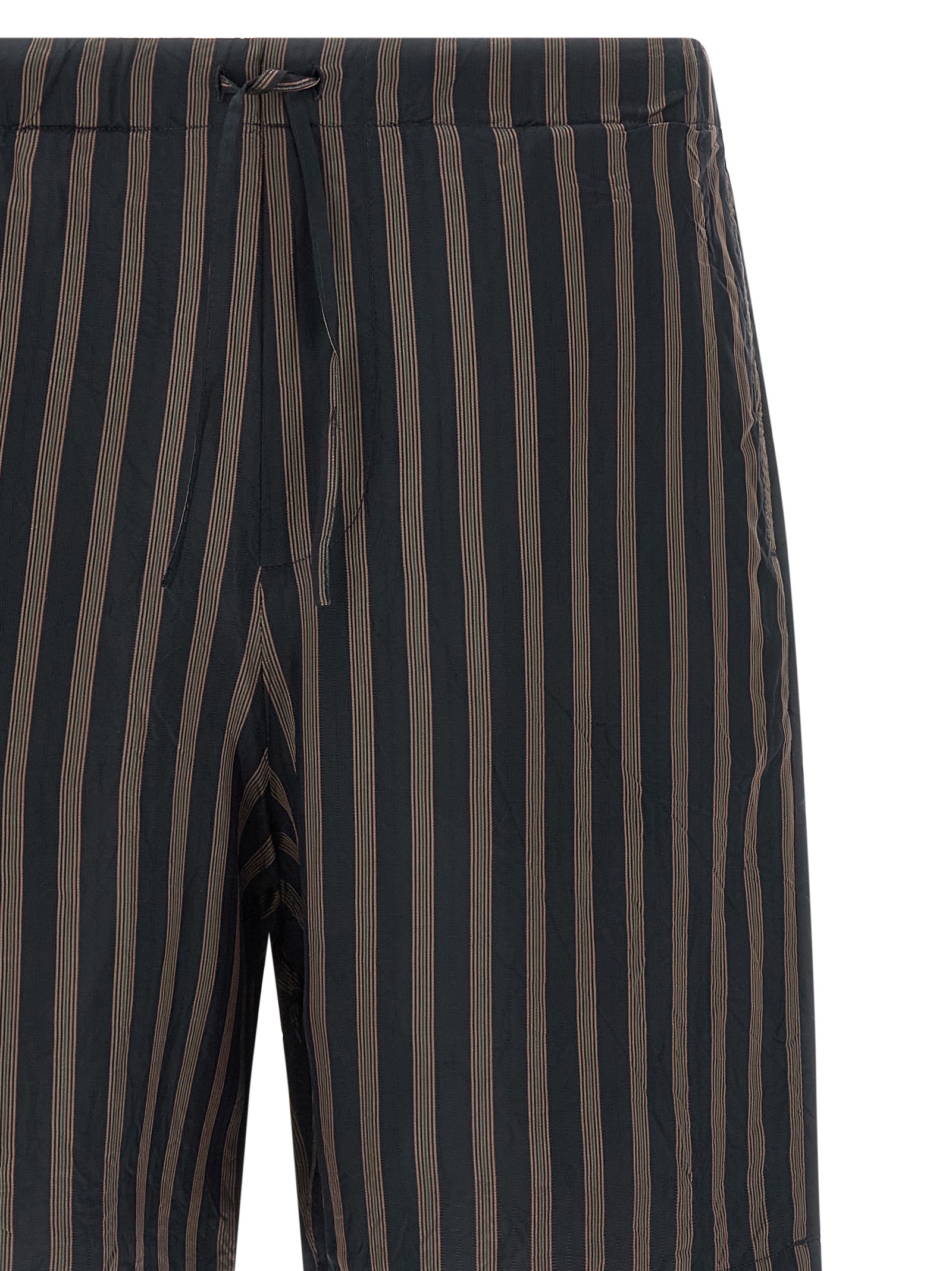 ‘Piperi’ striped cupro bermuda shorts, drawstring elastic waistband, trompe l’oeil flap, pockets.