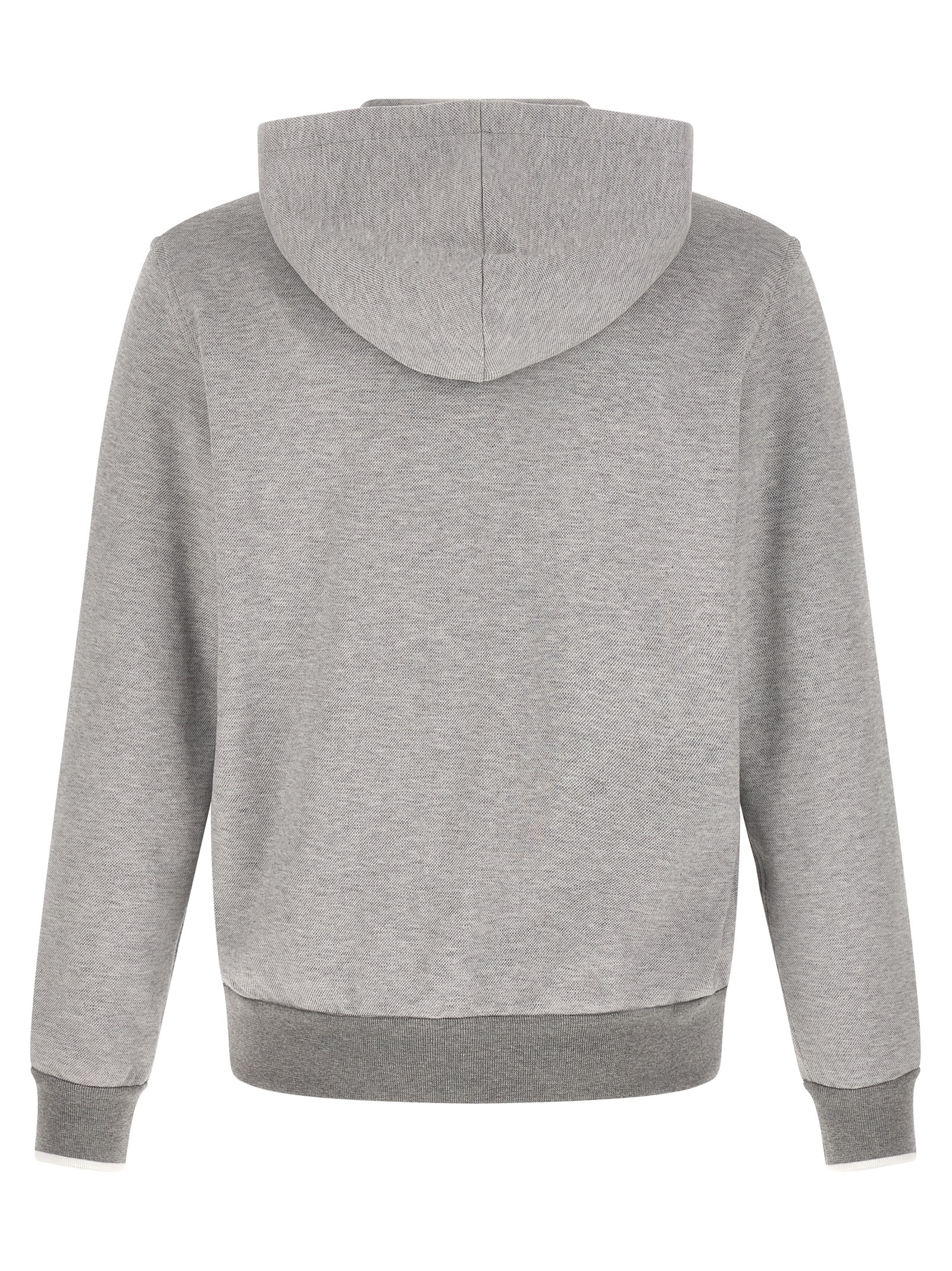 Piquet mélange cotton hoodie with logo embroidery and front zip closure, pockets, long sleeves with cuffs and dropped shoulders, and headband.