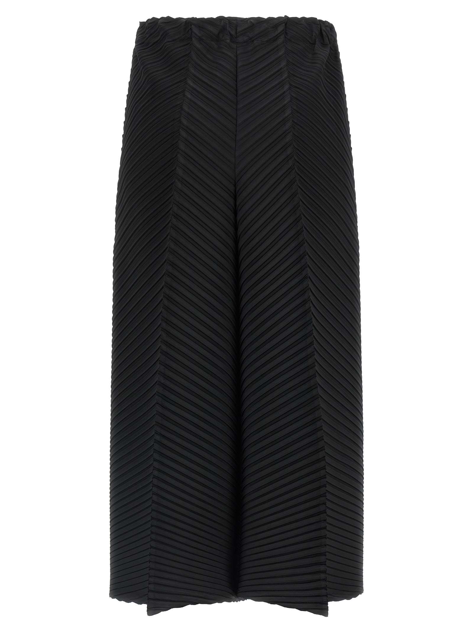 ‘Plaster Pleats Solid’ pleated pants, crop model, wide leg, stretched pleat, elastic waistband, pockets, asymmetrical leg bottom.
