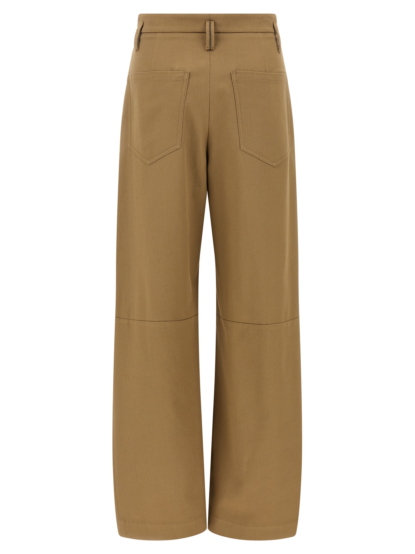 Cotton gabardine pants, pins, front zip and button closure, pockets, wide leg, back jewel detail.