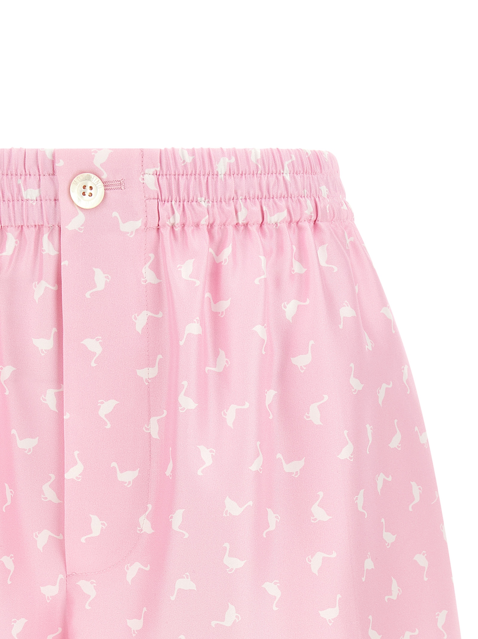 Shorts in cotton poplin with front pleats, wide leg, two-tone elastic waistband, pockets.