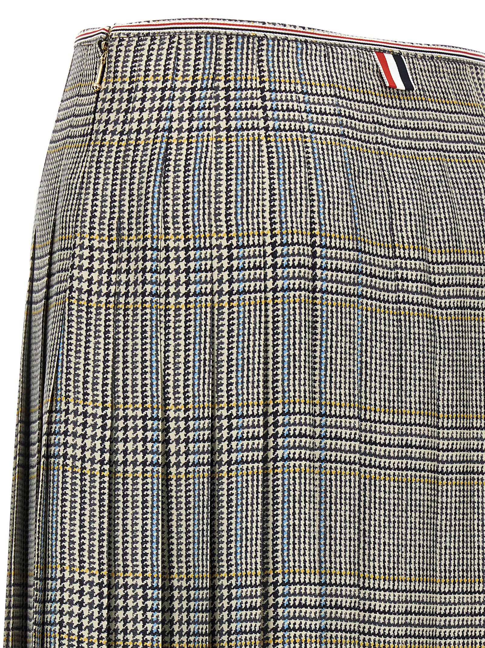 Midi skirt in all-over ‘Pow Hunting Tweed’ print silk twill, pleated, side zip closure, unlined.