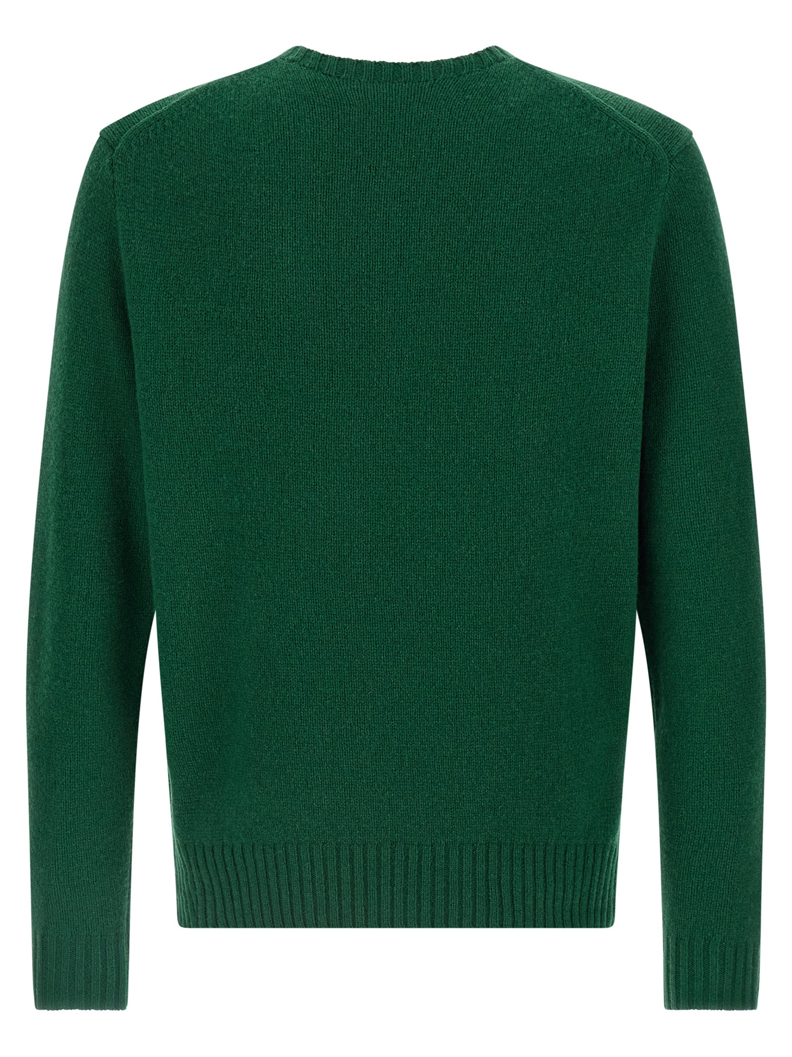 Polo Bear’ wool sweater with front intarsia and patchwork fabric details, crew neck, long cuffed sleeves.