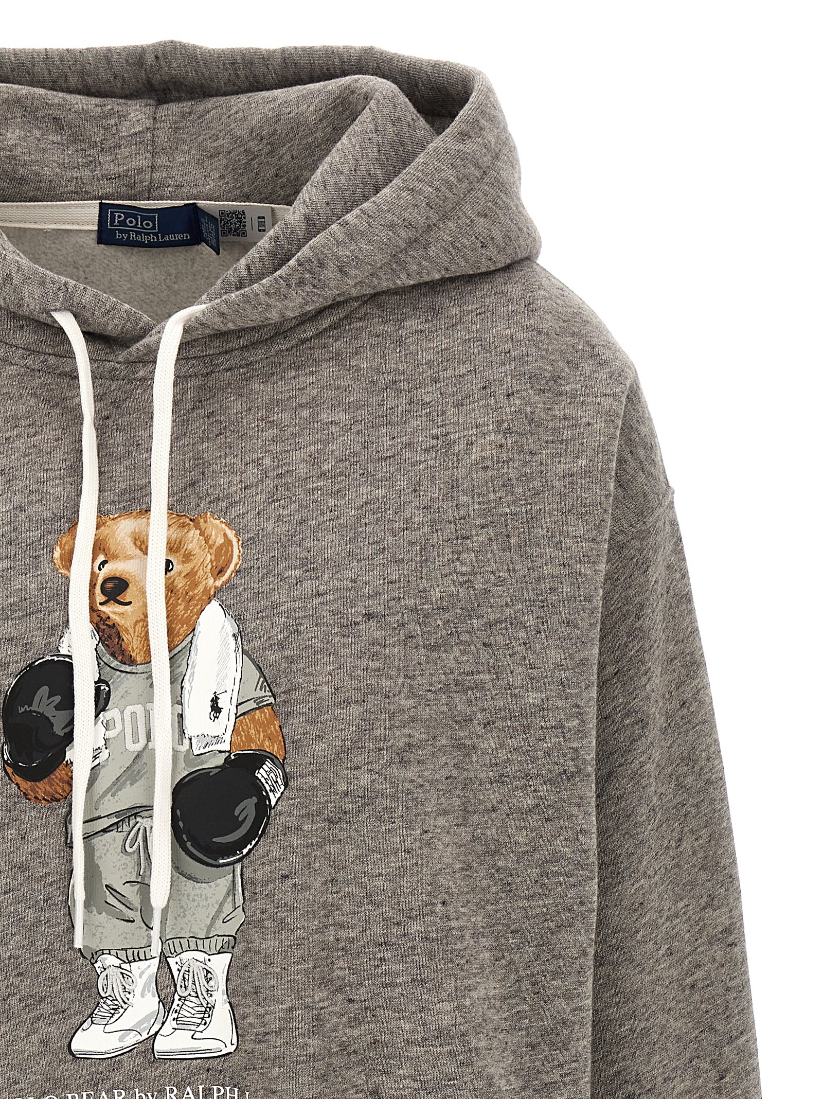 ‘Polo Bear’ cotton blend hoodie with front print, long cuffed sleeves.