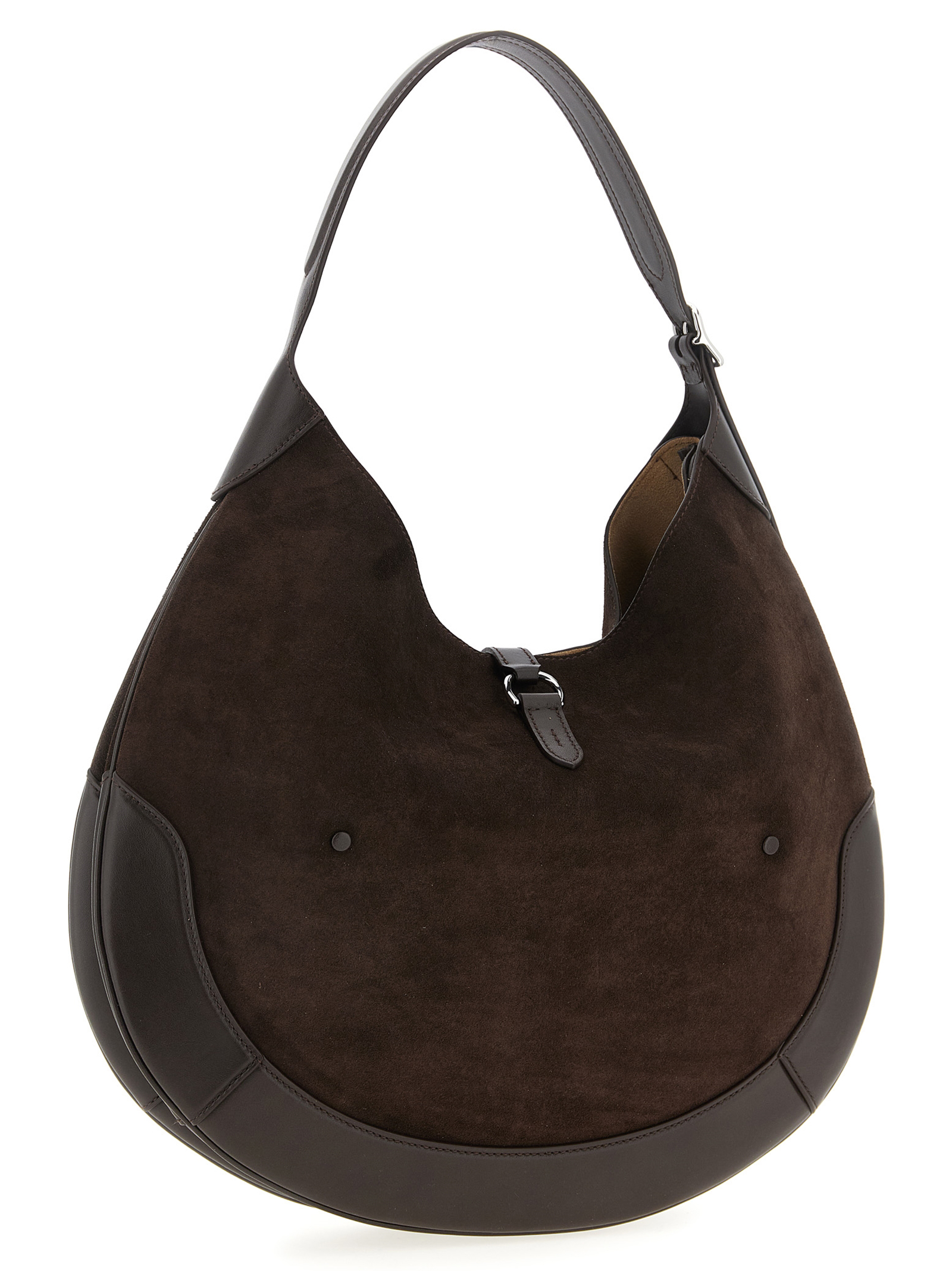 ‘Polo ID Large’ shoulder bag in suede and tonal leather, double compartment saddle silhouette, magnetic closure, leather and metal Hutton buckle detail, adjustable handle.