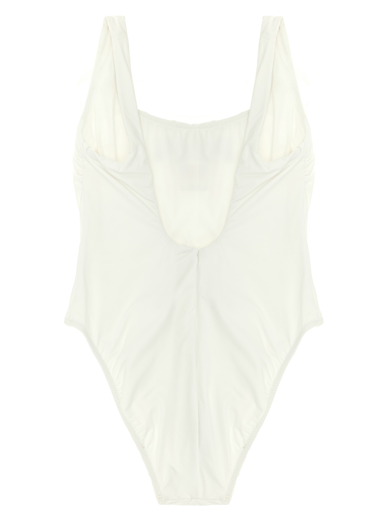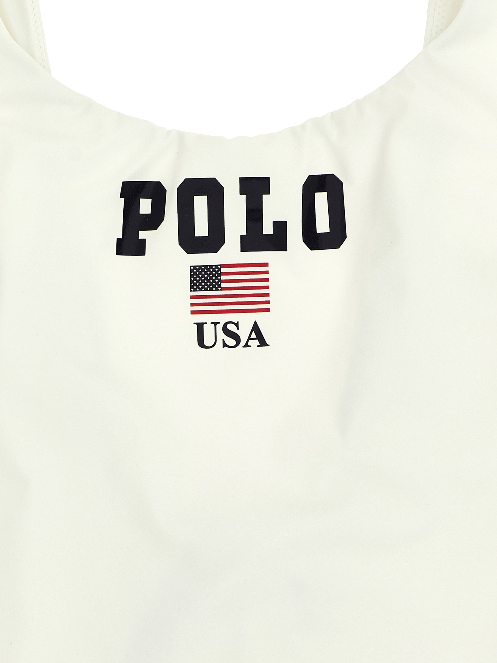 One-piece swimsuit in technical fabric, Olympic model, front ‘Polo’ print, rounded square neckline at the front, deep round neckline at the back, high leg, cheeky cover.