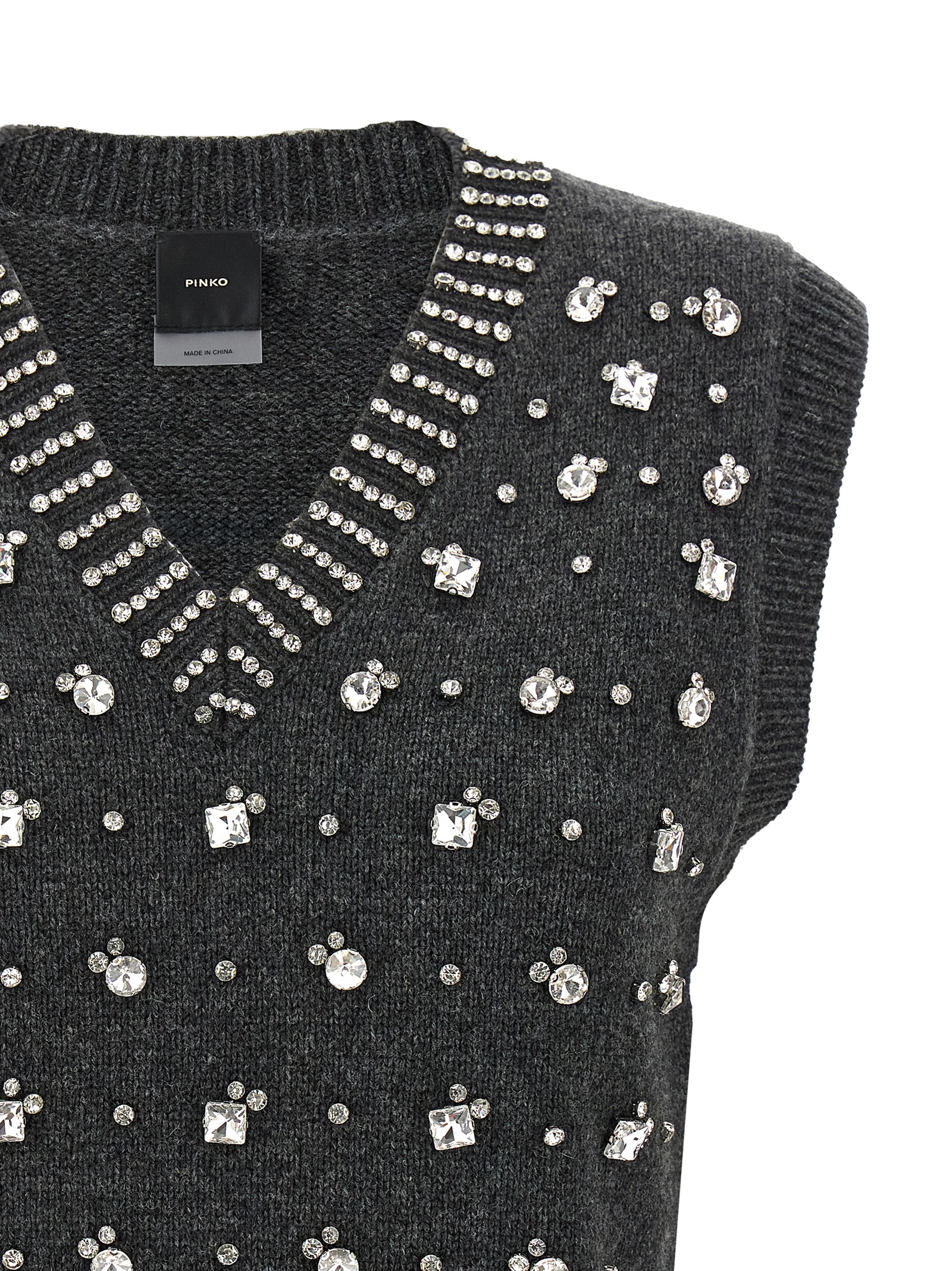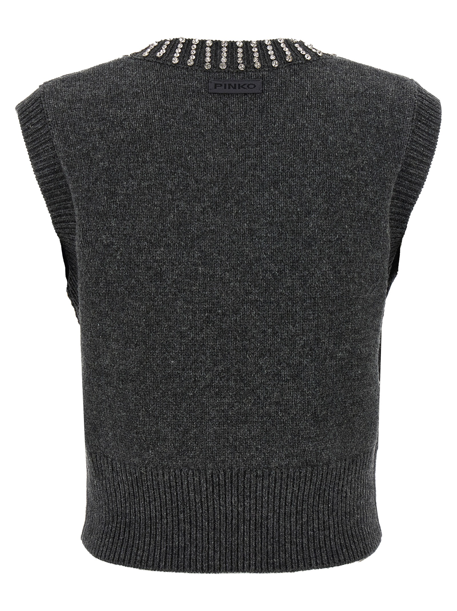 ‘Ponziane’ wool vest with front crystal application, crop pattern, V-neck, tone-on-tone logo patch at the back.