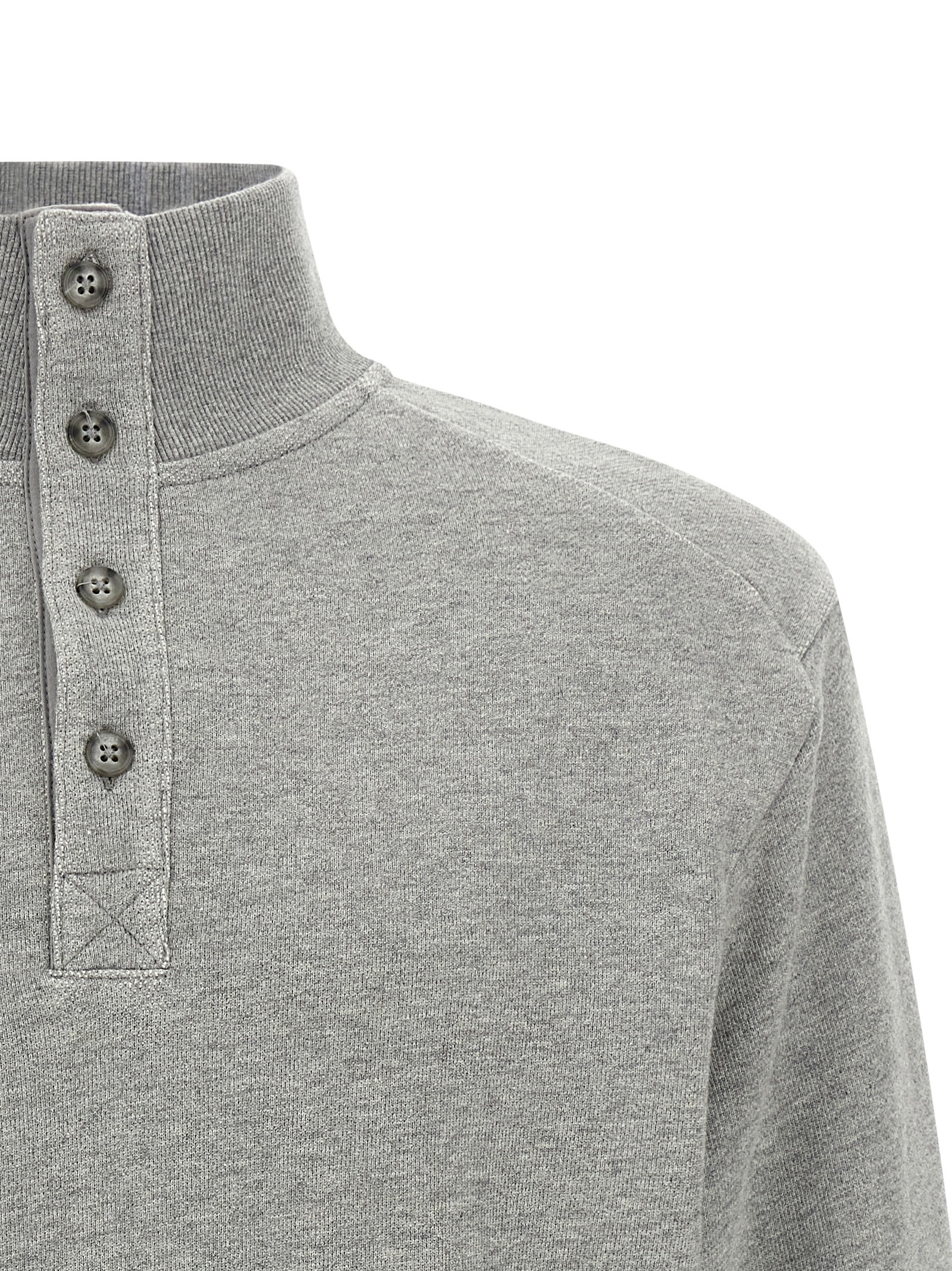 510 g/m² mélange ‘Port’ cotton sweater with high neck, front button closure, long sleeves with cuffs and dropped shoulders, and band on the hem.
