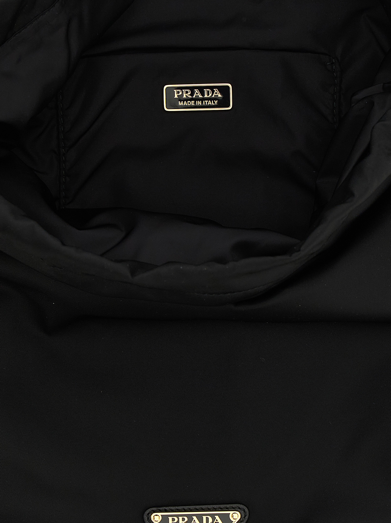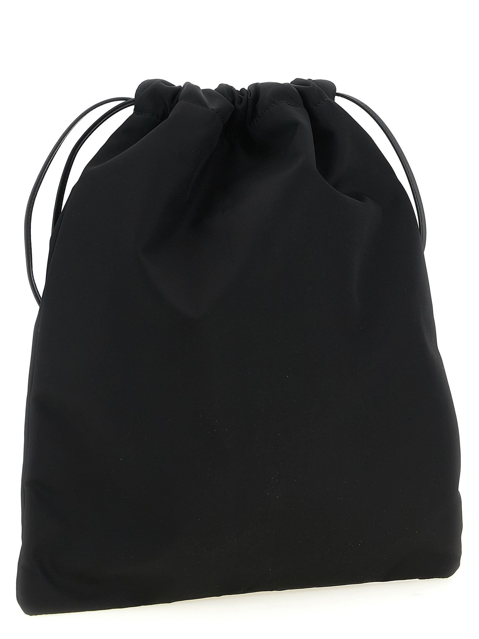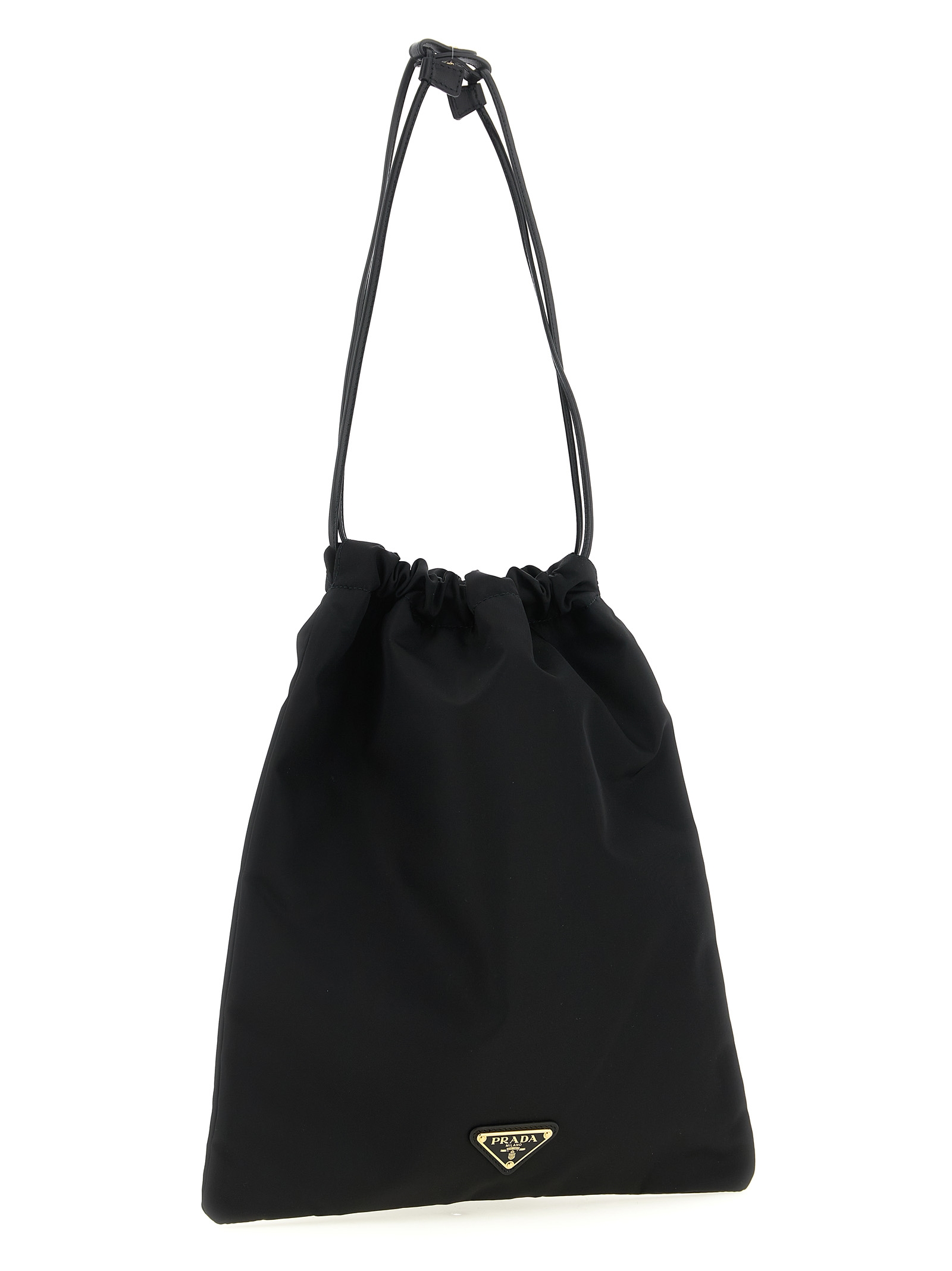 ‘Prada Wish’ Re-Nylon pouch with front enameled metal triangle logo, tone-on-tone leather drawstring closure.
