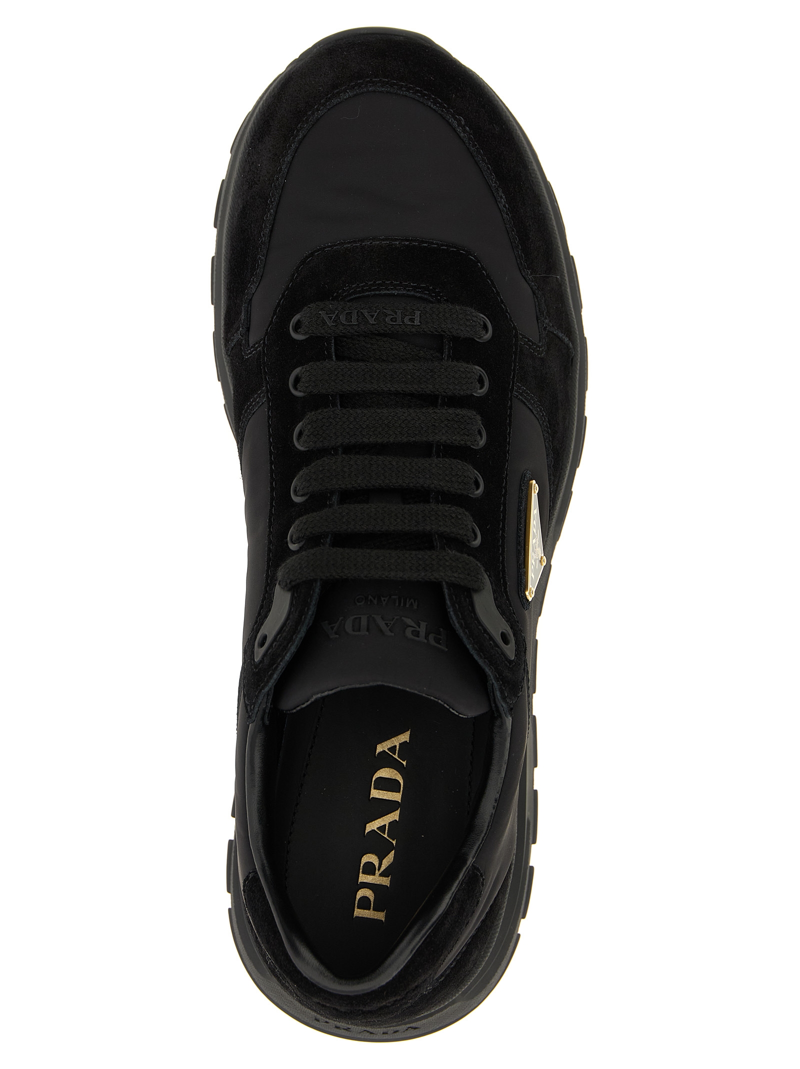 ‘Prax 2.0’ sneakers in Re-Nylon and suede, triangle logo in enameled metal on the side, lace-up closure, rubber sole.