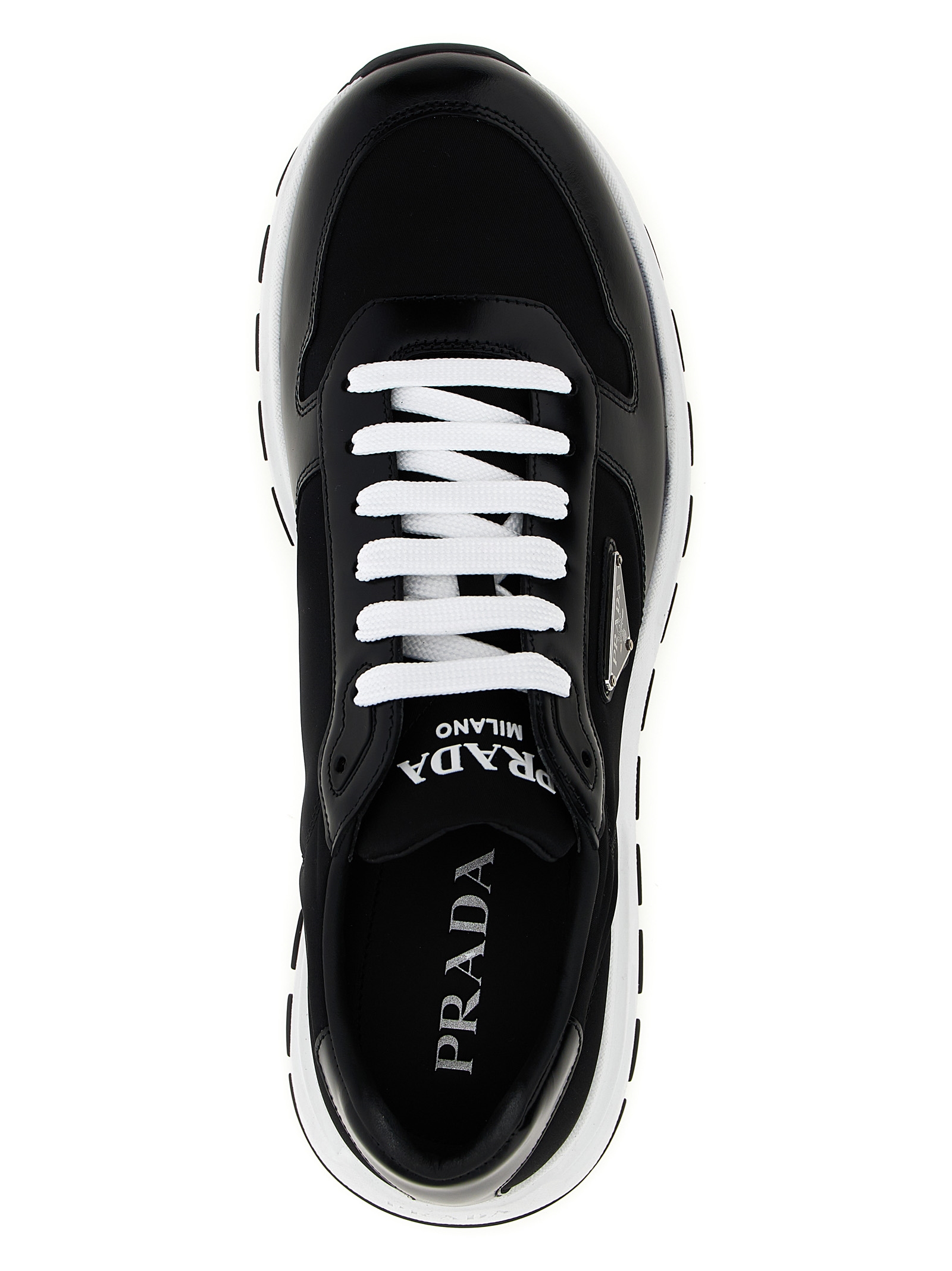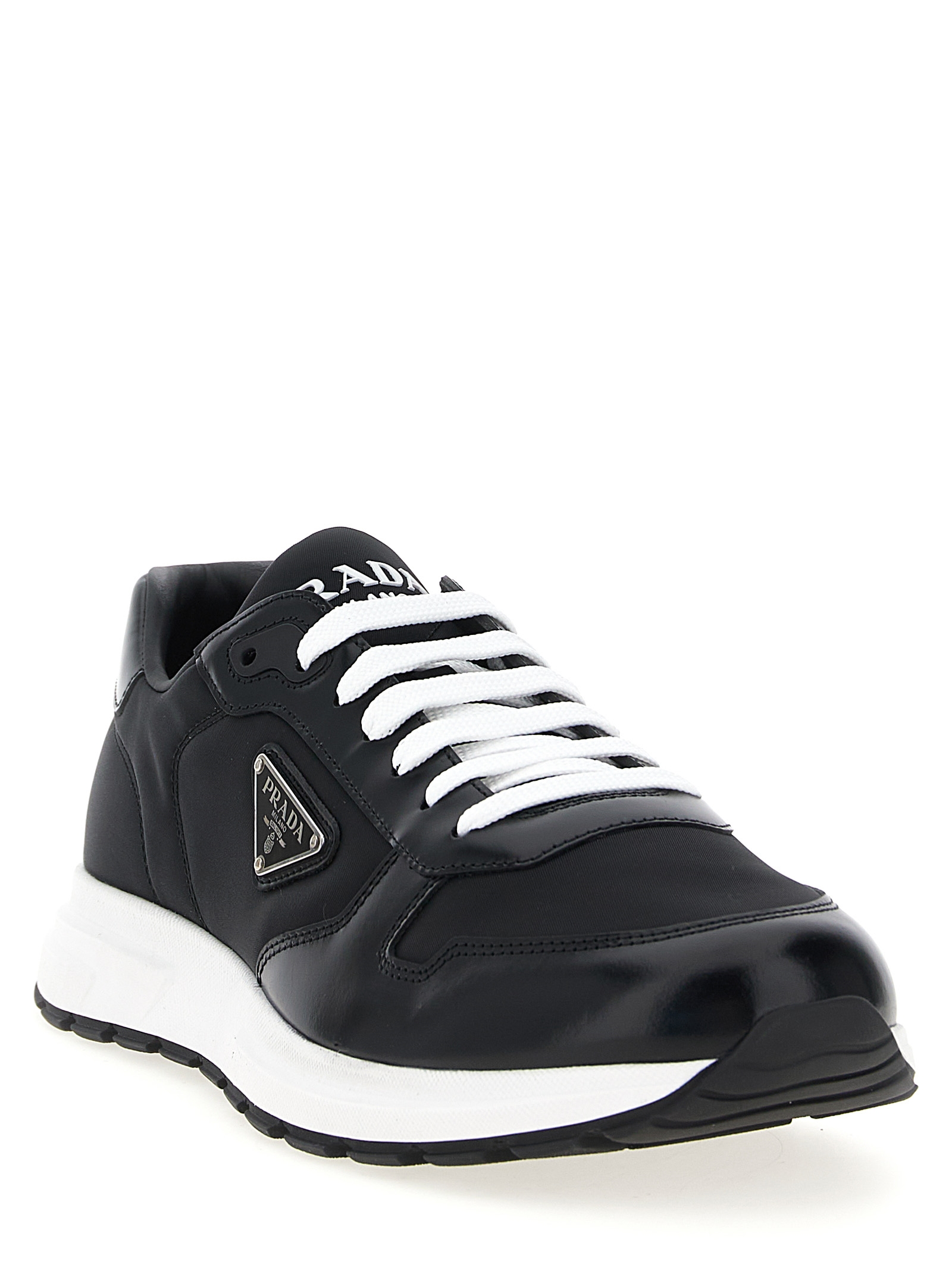 ‘Prax 2.0’ sneakers in Re-Nylon and leather, triangle logo in enameled metal on the side, lace-up closure, rubber sole.